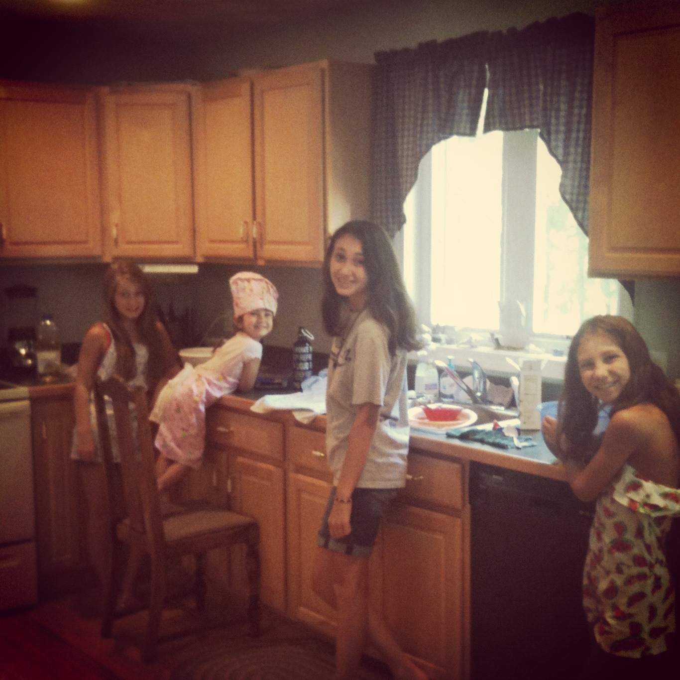 I’ve been taking a lot of pictures of the girls “working” with me in the kitchen. I love that they want to help out and learn. I also love Lucy in this chef hat!!