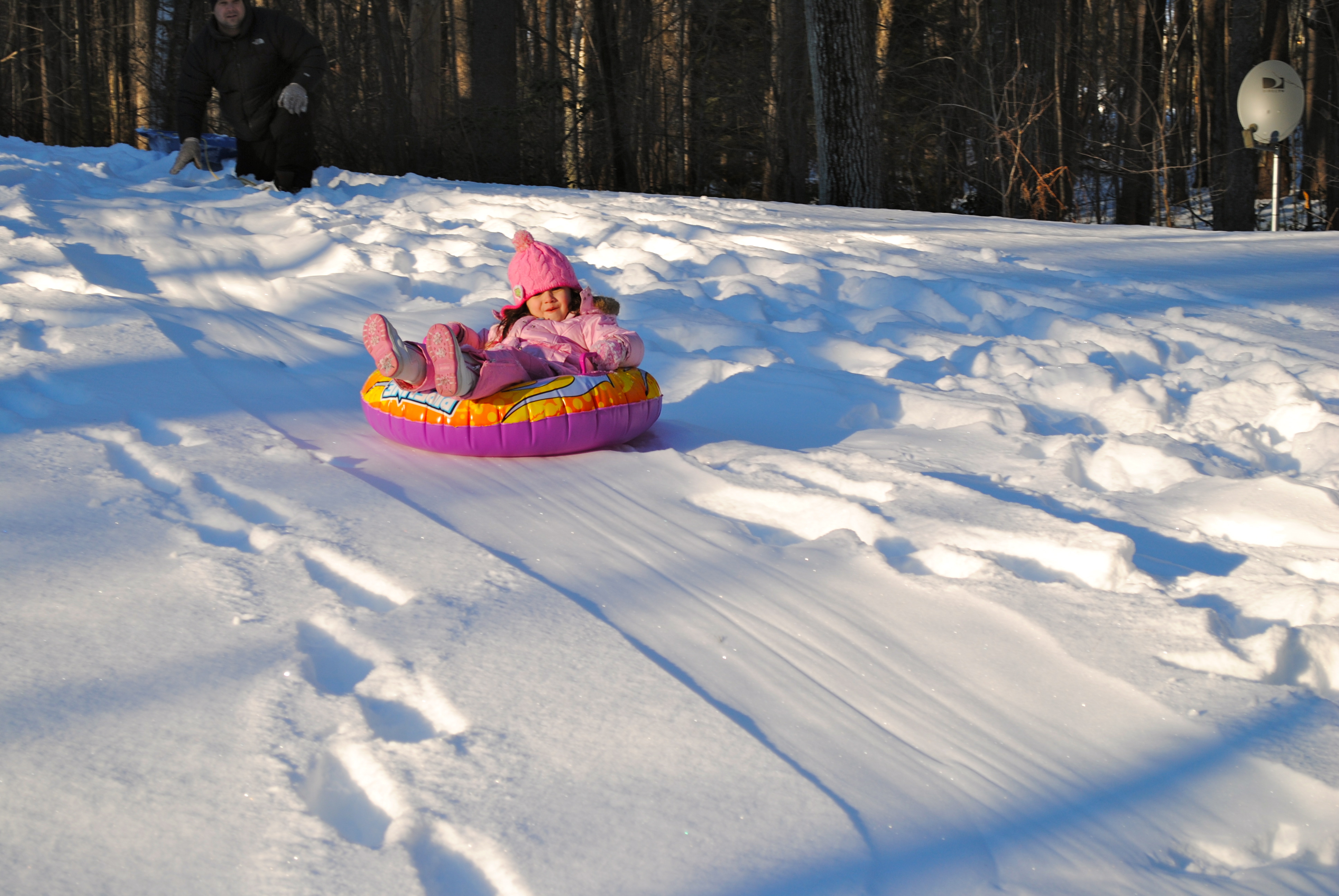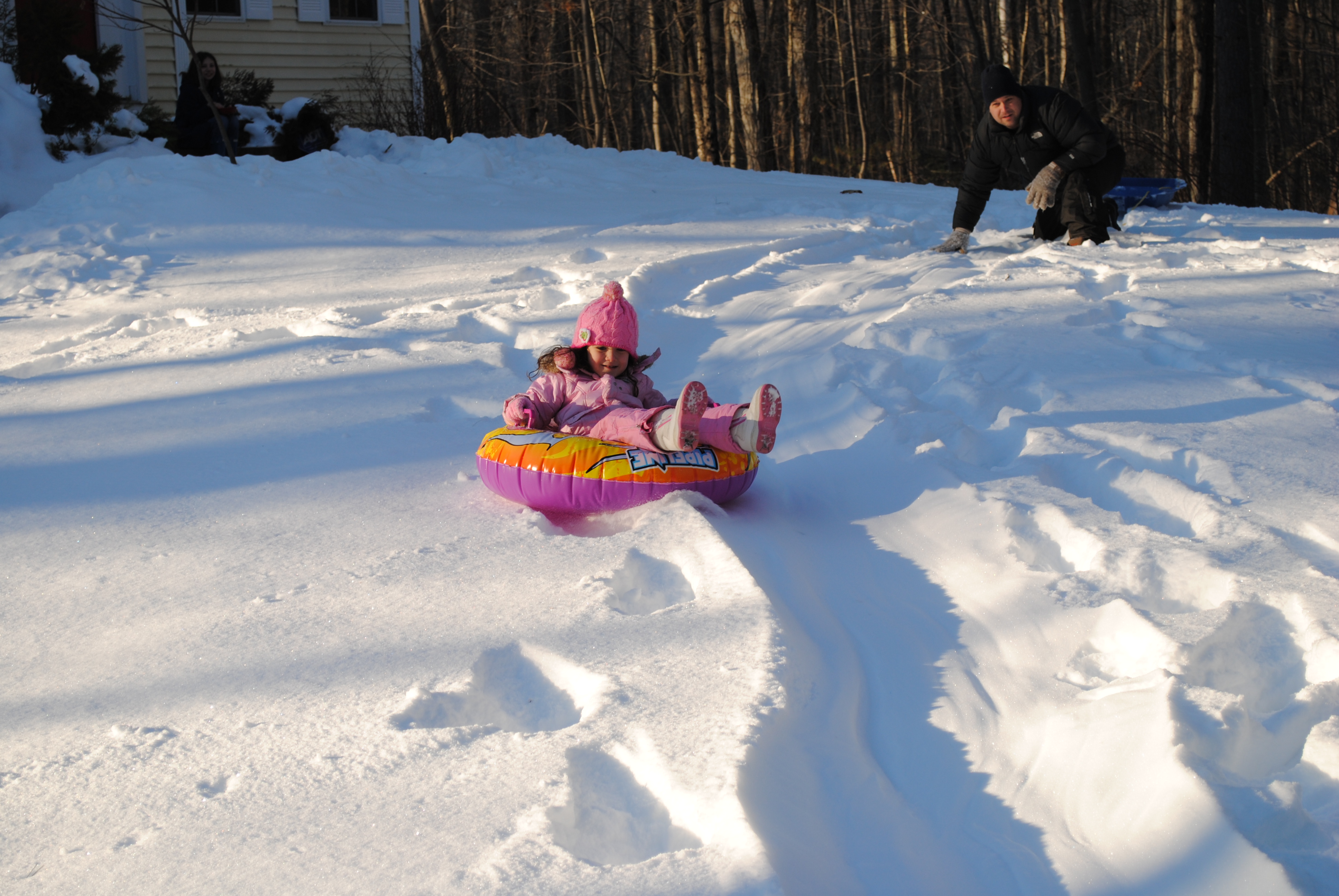 Lucy and Jon had so much fun playing in the snow the other day!! Chloe wanted to join in the fun for one run down the “hill”.
