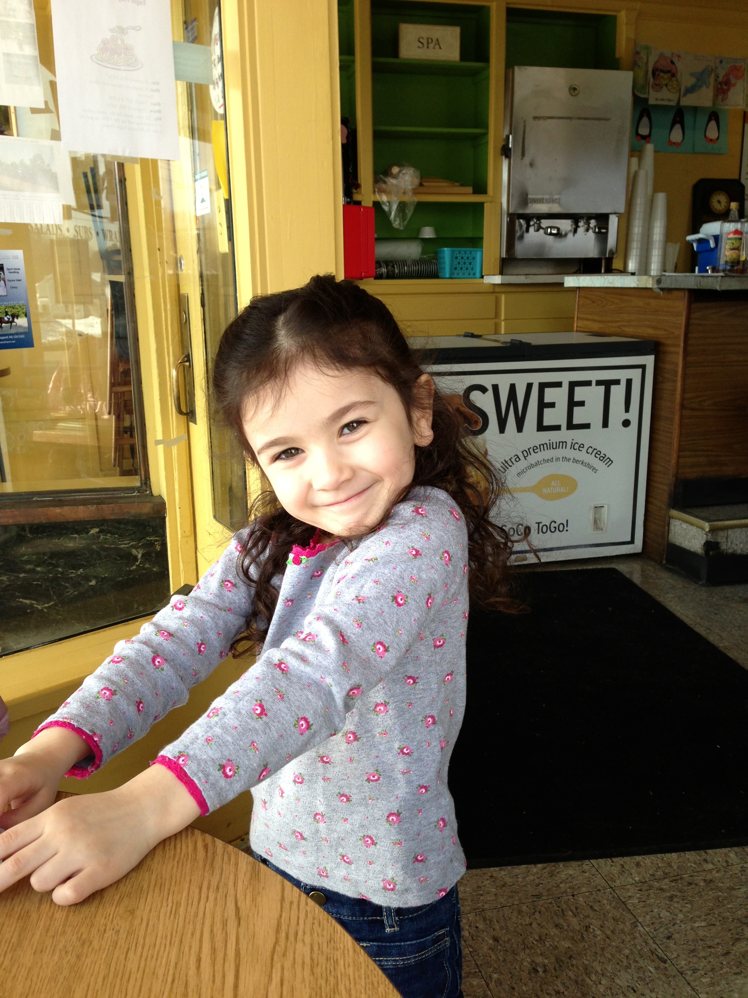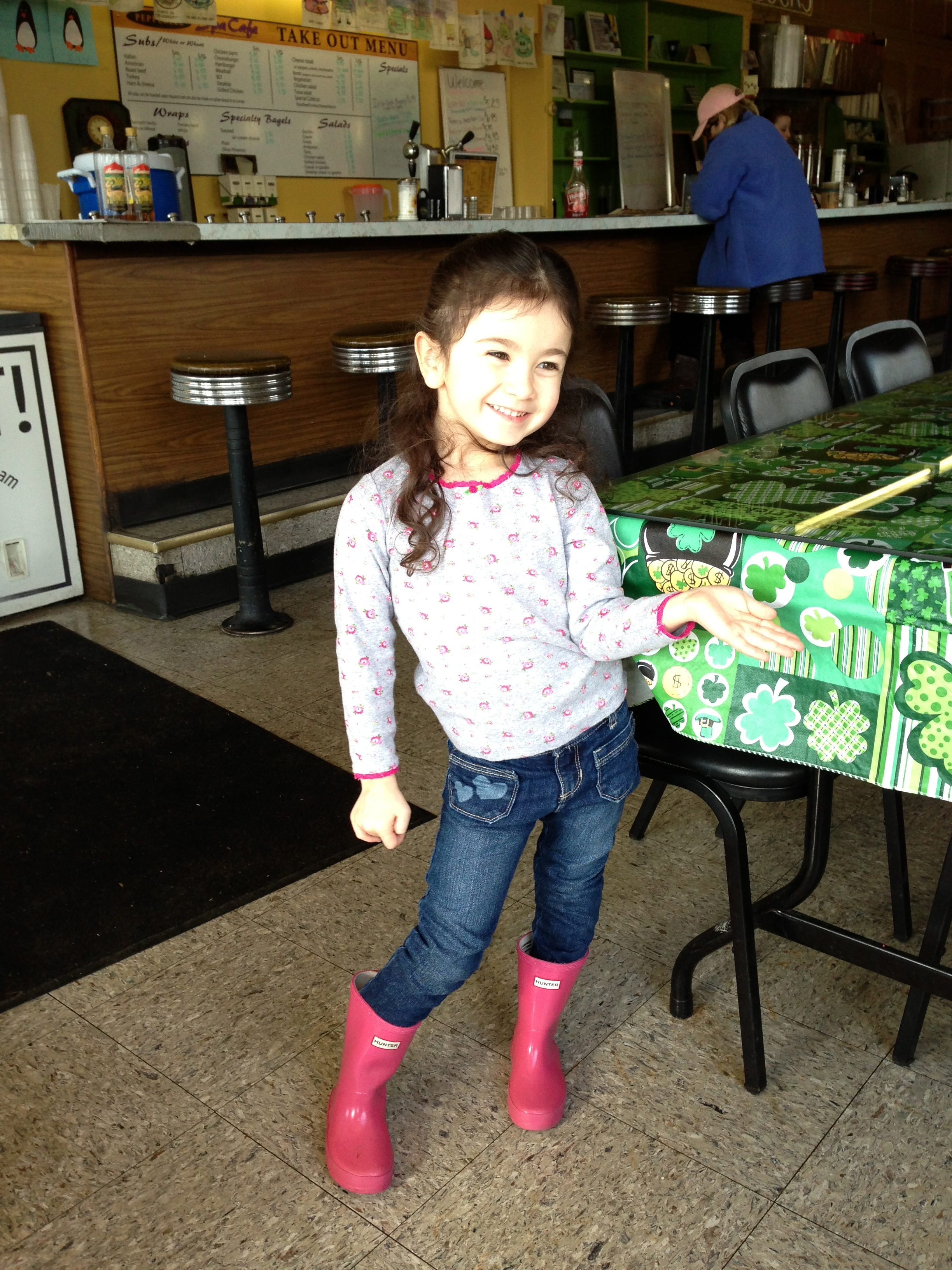 Lucy and I went out for breakfast this morning while my car was getting an inspection sticker. One of her favorite stories to tell is about how I got pulled over last year for having an expired sticker. This kid loves the diner!