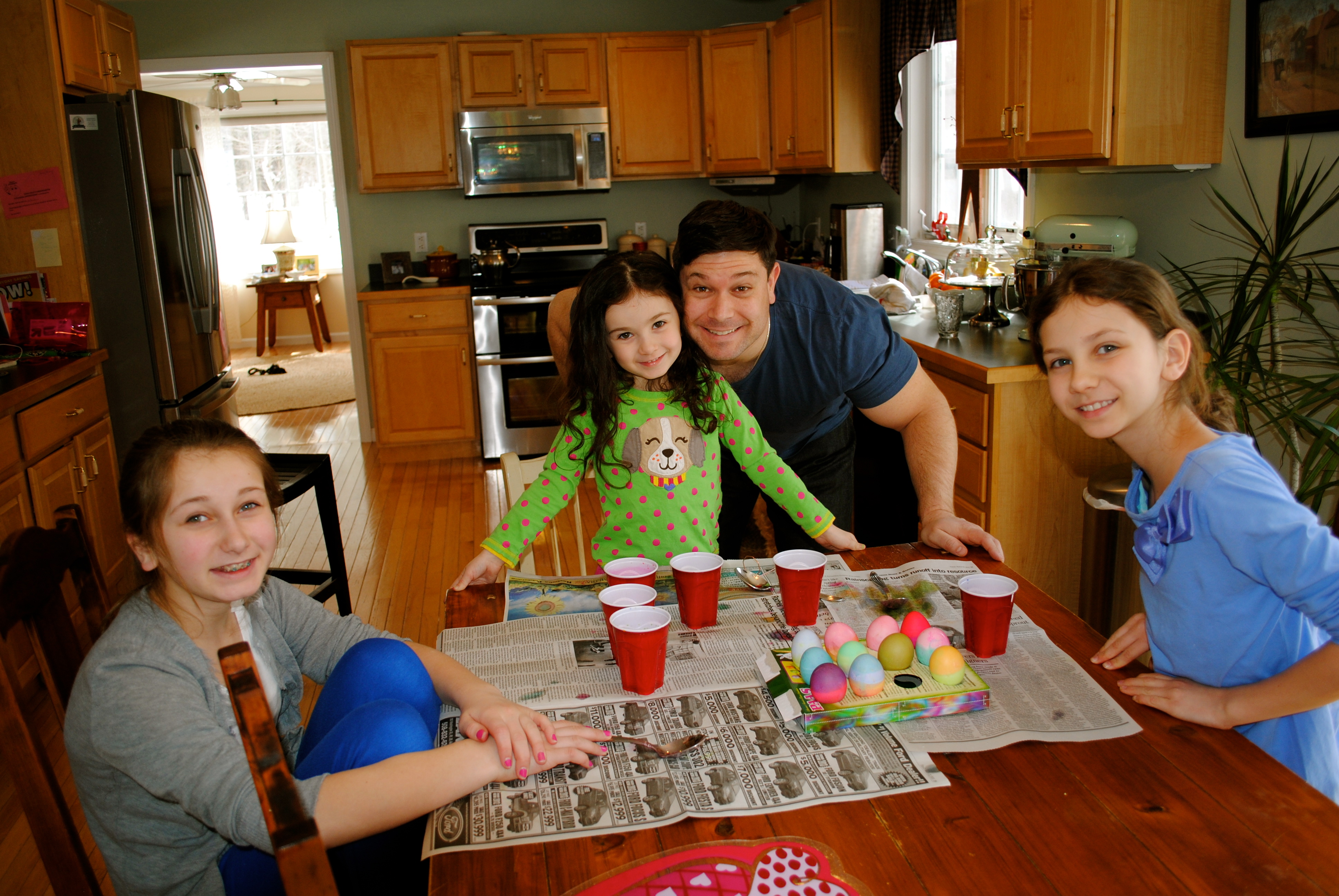Megan, Chloe and Lucy worked hard on their Easter eggs this year. It started with Lucy spilling pink dye all over the table but once that was cleaned up she got the hang of it.