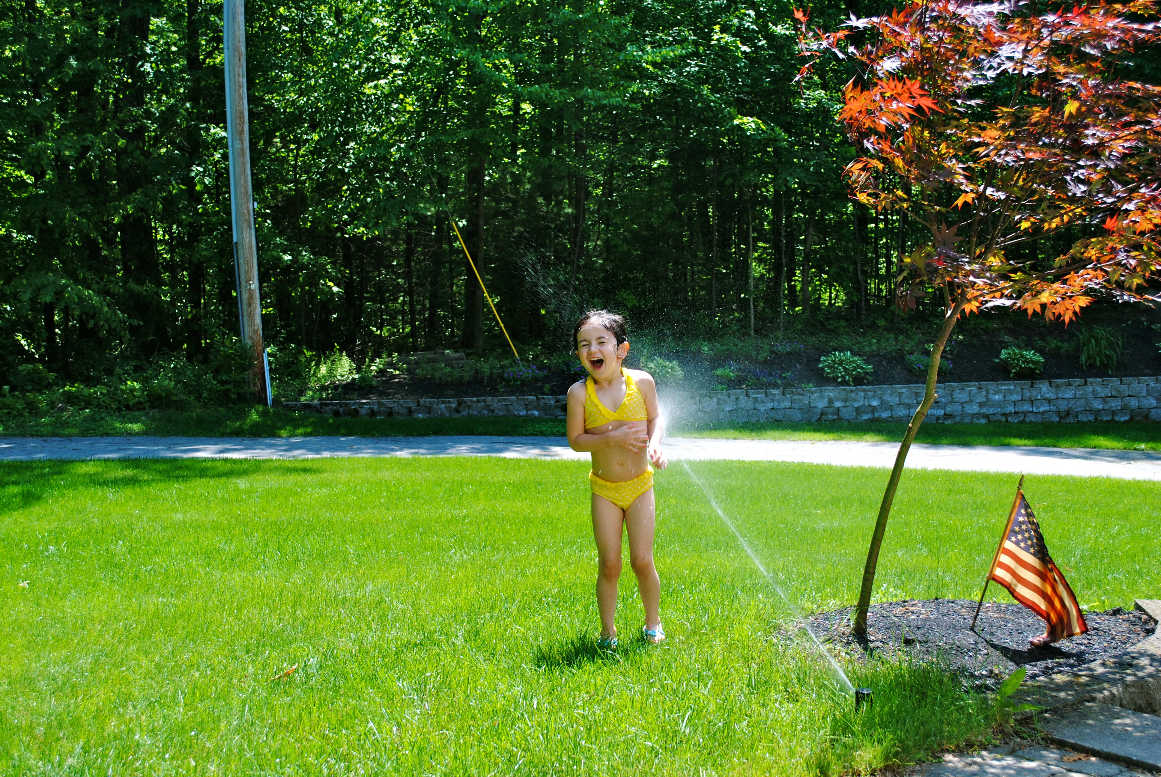 It is finally starting to feel like summer! It’s 90 degrees out today and the pool is just about ready for the weekend. In the meantime, Lucy is enjoying the sprinklers: