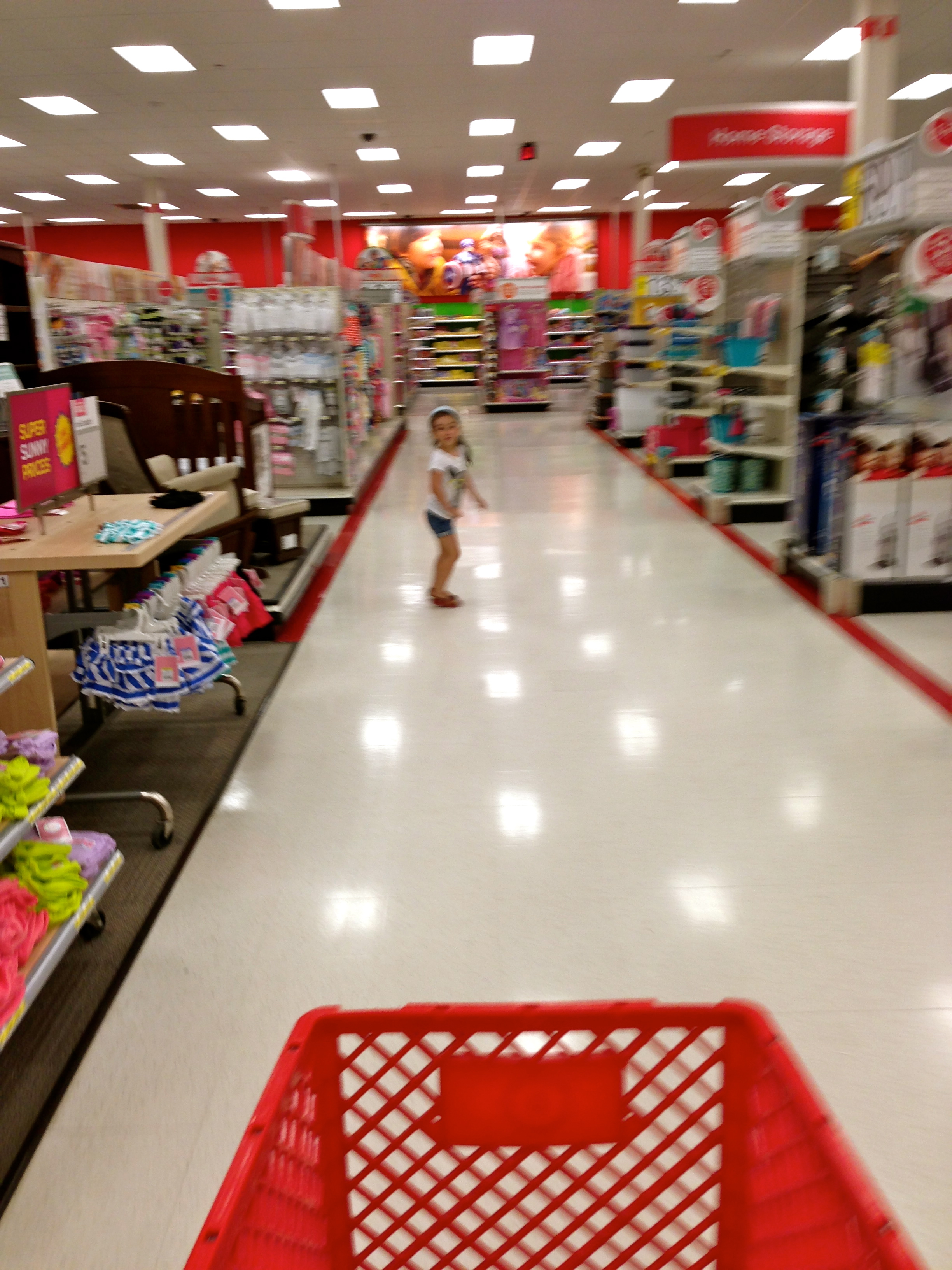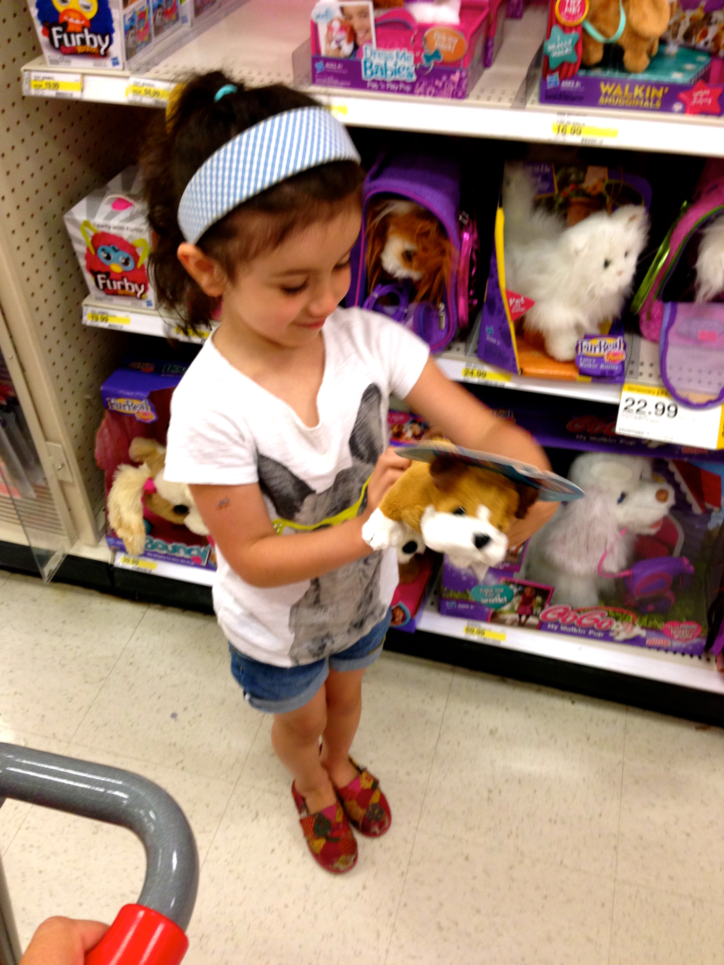 Today is Lucy’s last day to be 4. When she woke up this morning she told me that she wanted to be 4 forever. I think because all year I’ve told her how wonderful I think 4 year olds are. It’s the first year of being a little kid. They are past the baby, toddler stage. No more diapers, diaper bags and strollers. It’s when they really start to develop their personalities. I find 4 year olds to be sweet and kind little people who are eager to learn and eager to please. I will have miss having a 4 year old in the house but I’m excited to see what “5” brings. It’s another one of my favorite ages (along with 0,1,2,3,6,7,8,9,10,11,12,13,14,15,16 and 17……I really do love being a mom). So today, to celebrate Lucy’s last day as a 4 year old, I did what most other mothers with 4 years olds do. I took her to Target.