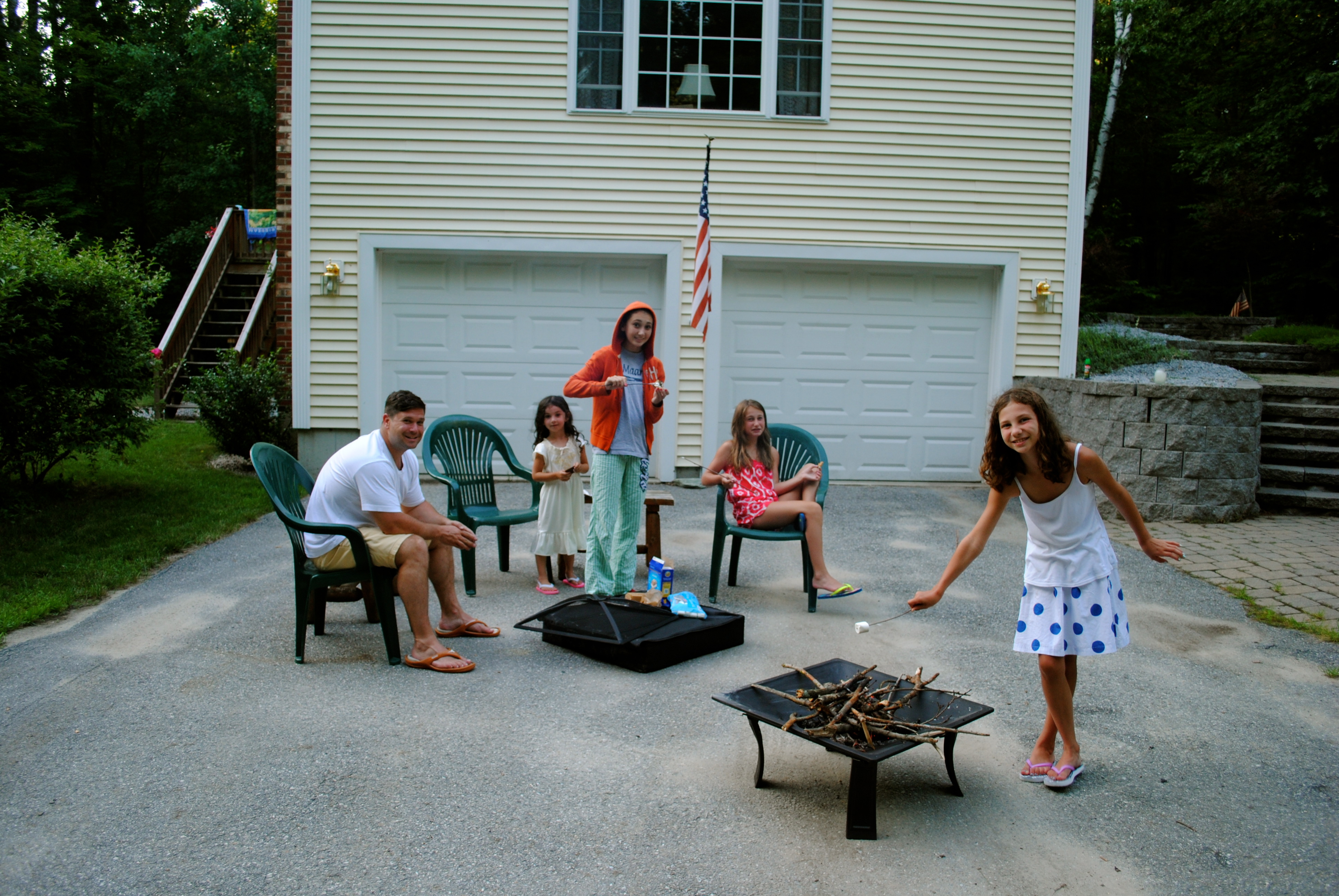 The 6 of us ended up spending the day at home this year. And what a great day it was! Jon and I spent the entire day in the pool playing with the girls. Emma had to work for a couple of hours in the late afternoon but once she got home we made s’mores in the driveway and hung out outside again until the mosquitos got too much to handle.
