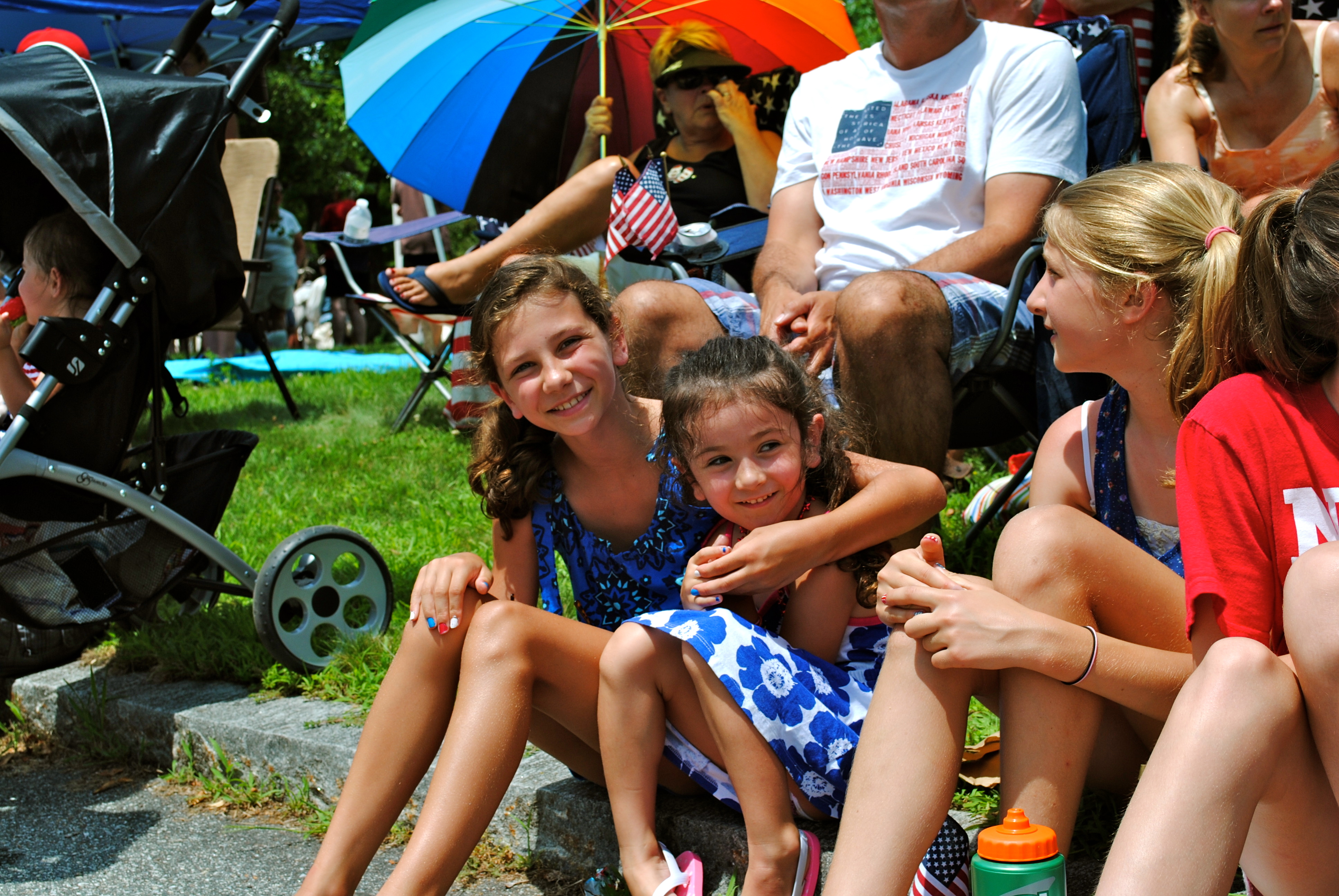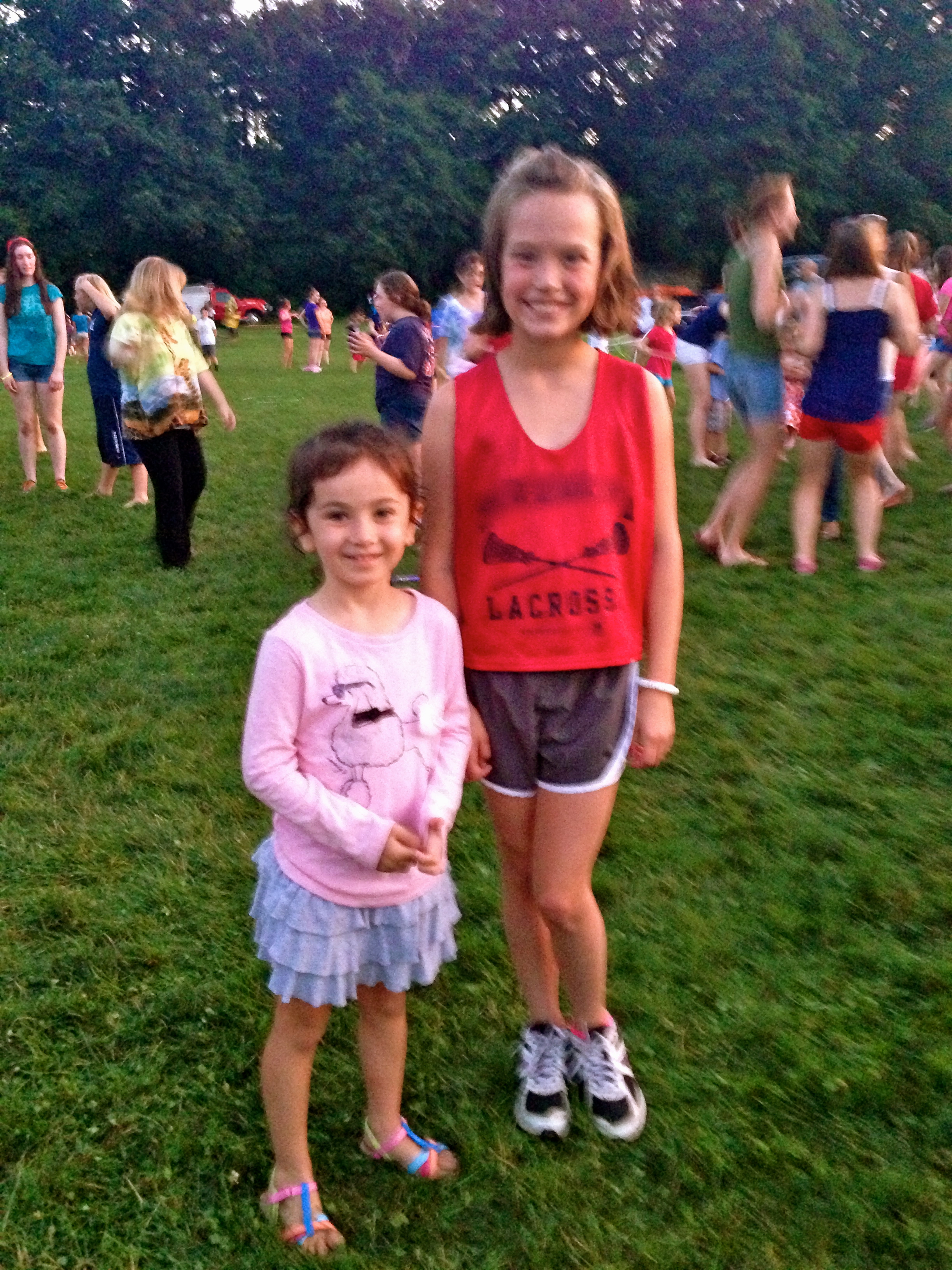 About a month before we moved to town I heard what a big deal the 4th of July is around here. There’s a big parade, a town cookout and then a big fireworks show. I remember wanting to rent a hotel up here so we wouldn’t miss it. Unfortunately we had other plans that weekend and had to wait an entire year to participate in the fun. For the last 6 years we have sat in the same spot at the parade with the same group of people. The girls have such a great time! Every year I take tons of pictures of these kids all sitting on the sidewalk waiting for the parade to begin. There were a few families missing this year but we still had a great time. After the parade we came home to swim for a few hours, it was SO hot out there! Then we headed over to a friend’s house for a cookout and waited for the fireworks show.