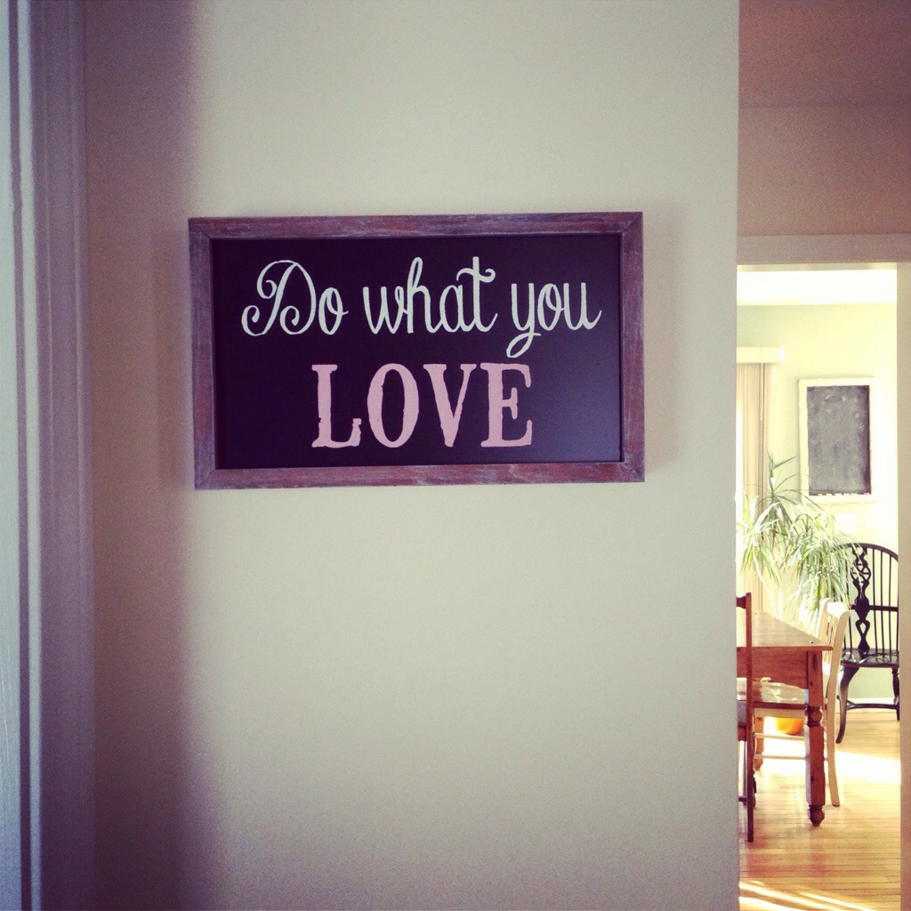 I’ve been thinking a lot lately about what I’m “supposed” to do now that the girls are all in school. Jon keeps telling me to just do what I love. When I saw this sign today I had to buy it, because I am doing what I love, each and every day.