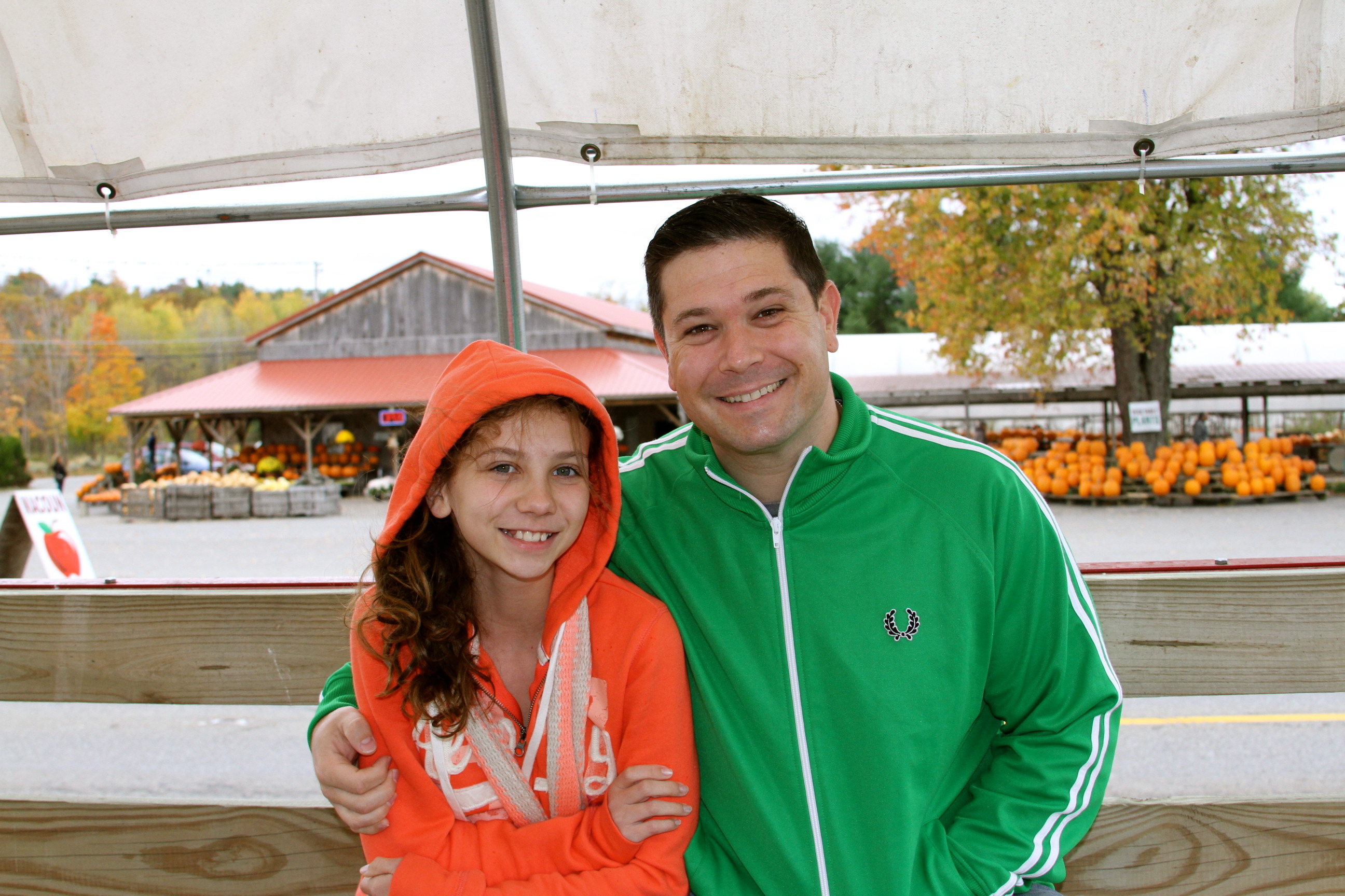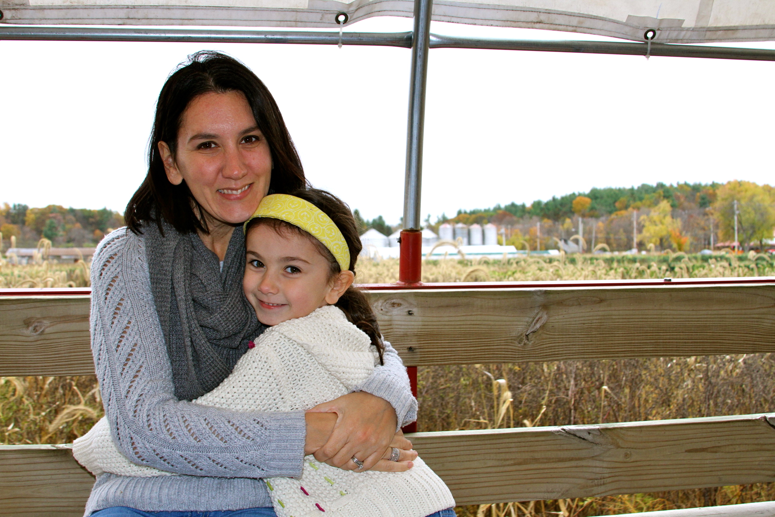 We went on our annual hayride this weekend. Seems a little different going as a family of 4 instead of as a family of 6. It was still fun though. The girls picked out their pumpkin and we grabbed some freshly backed cookies from inside the shop.