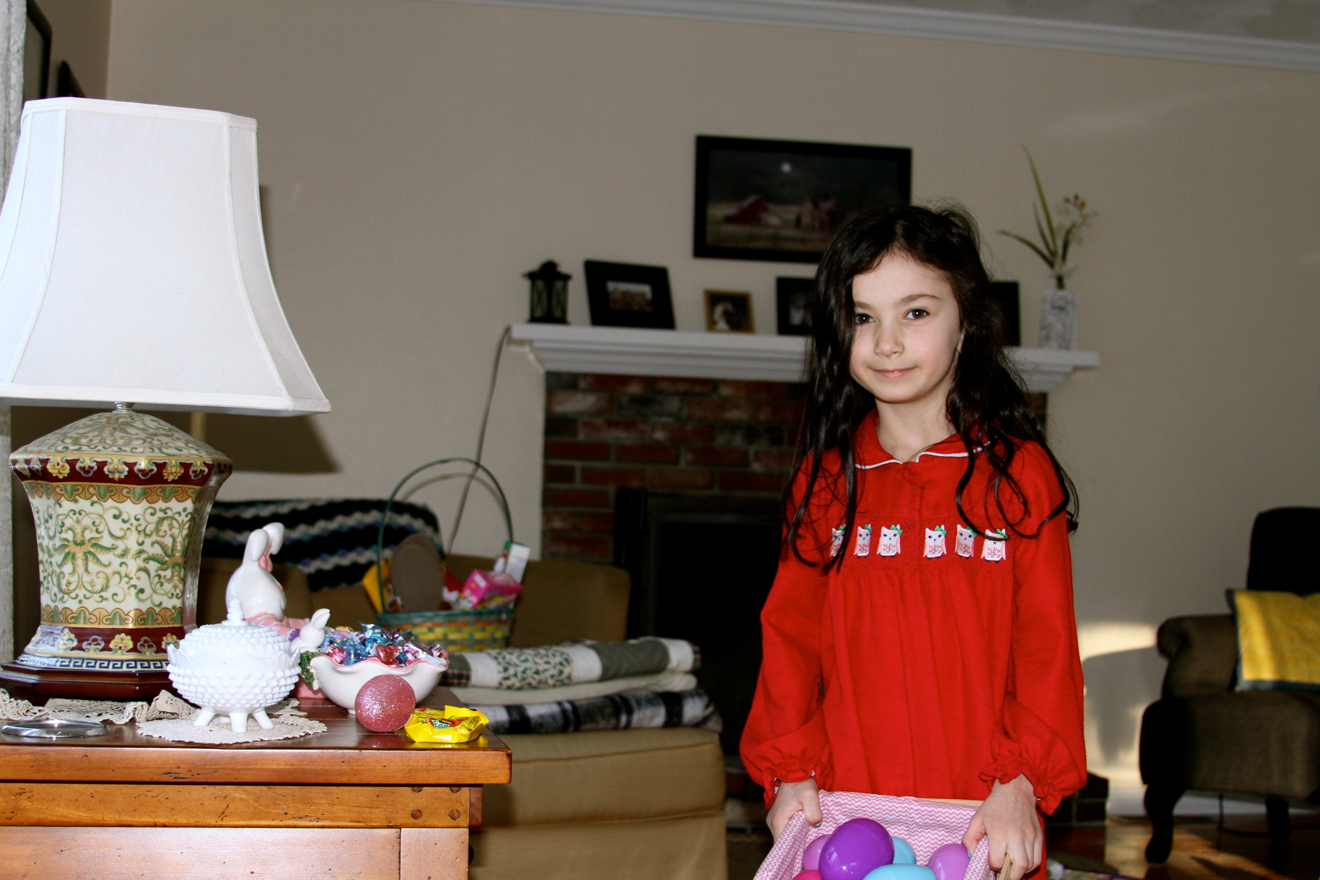 Easter has always been one of my favorite holidays. This year was extra busy and extra exciting!! We started off at home doing an egg hunt with the girls. Not too many 18 year olds get to hunt for eggs, but this was a special hunt. Somewhere in our house was a golden egg. Inside that egg was either blue or pink M&M’s letting the girls know whether they would be getting a baby brother or a baby sister.