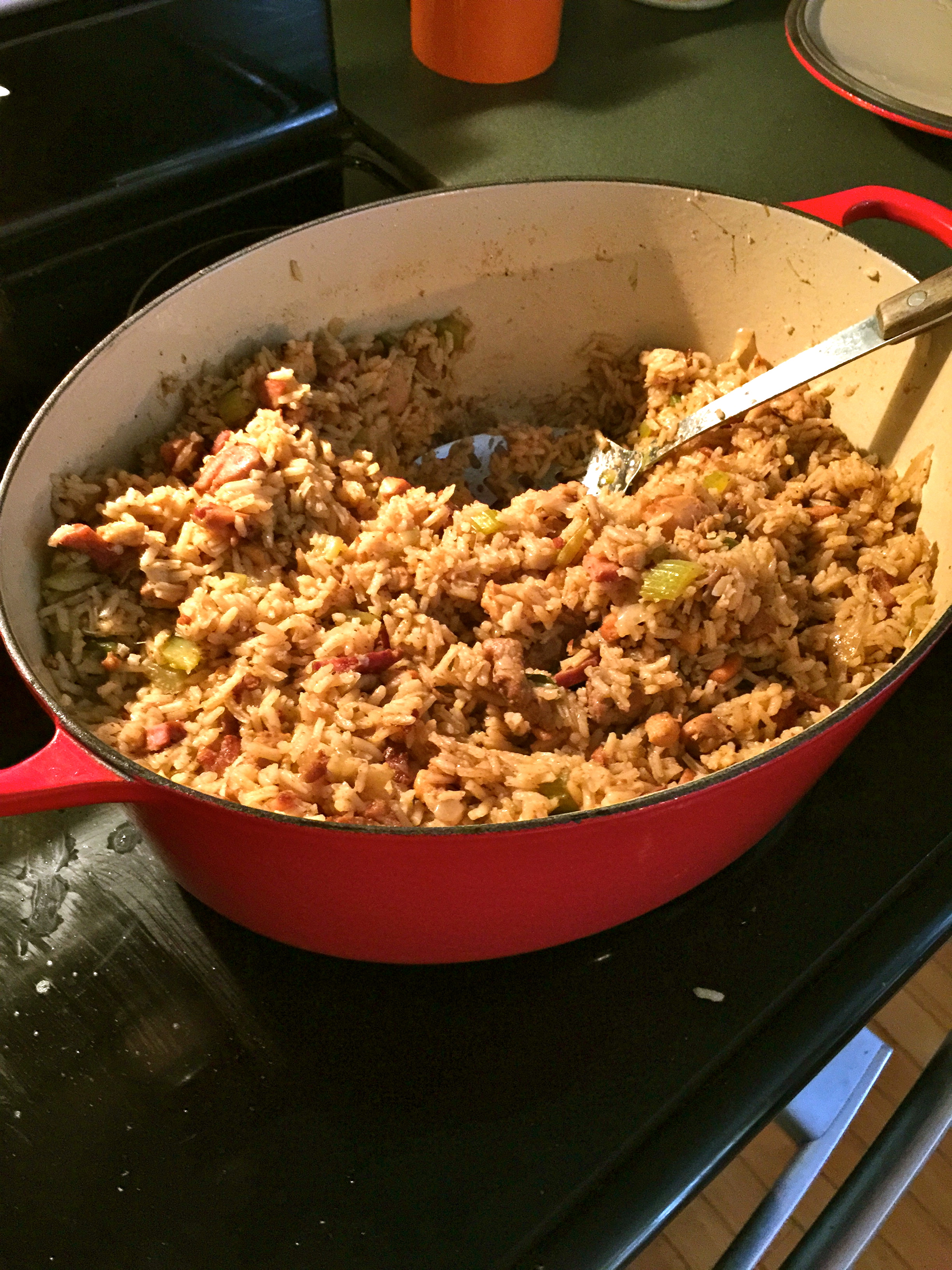 Jon worked in the attic most of the day yesterday and then made us a big pot of jambalaya.
