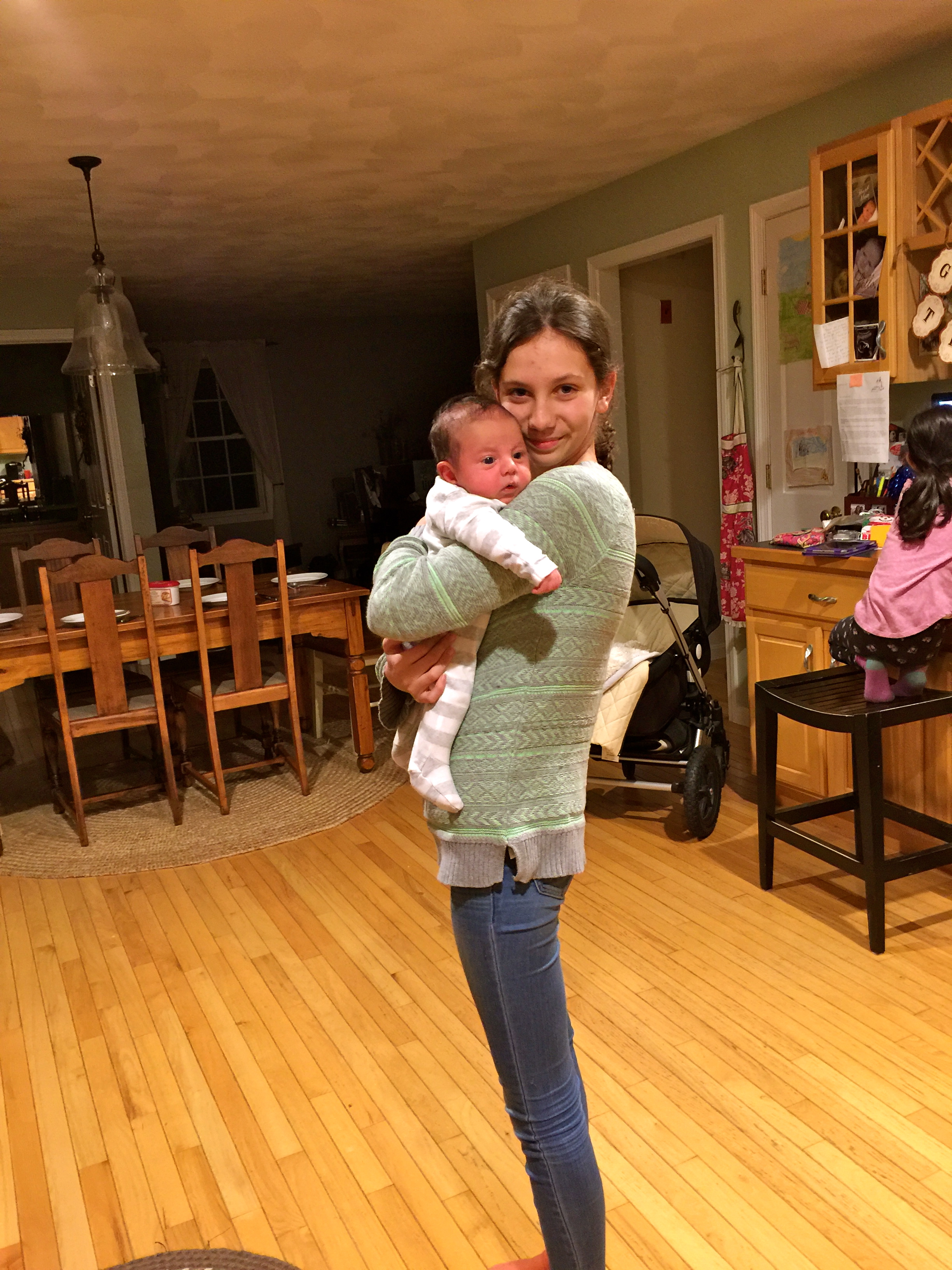 Loves: to be held ALL the time!! Thankfully there is always someone around who wants to hold him. He also loves to take walks in the stroller. As soon as we walk outside his eyes start to flutter and he’s asleep before we even make it to the driveway. He likes to sit in his Mamaroo and listen to Lucy read him a story. He also loves the Boba wrap. It’s the only way I can get anything done around here. It also makes running errands easier.