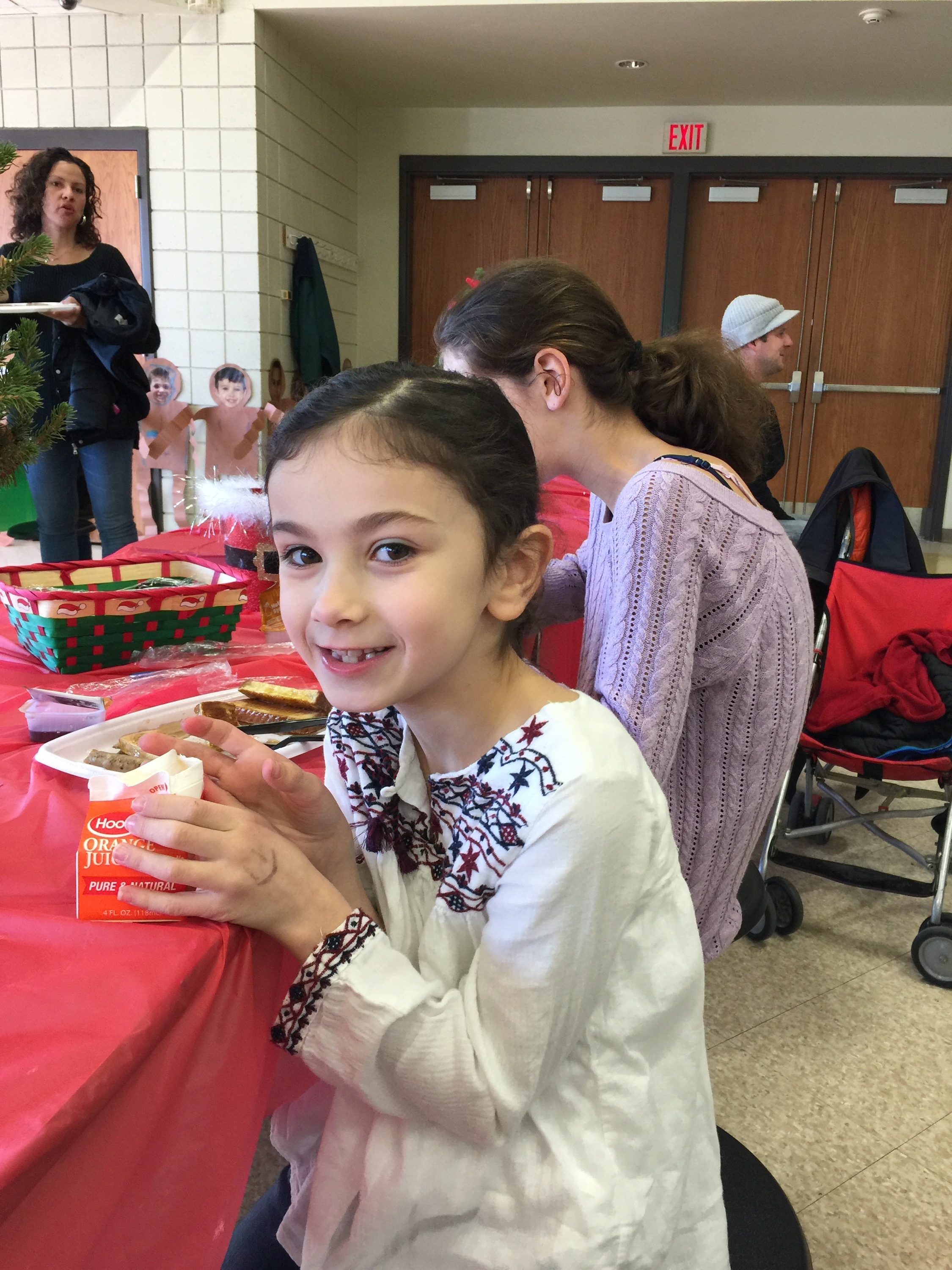 She was happy on Saturday morning when we got to have breakfast at her school and meet Santa and Mrs. Claus.