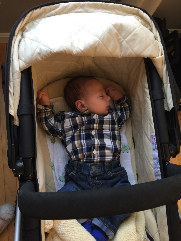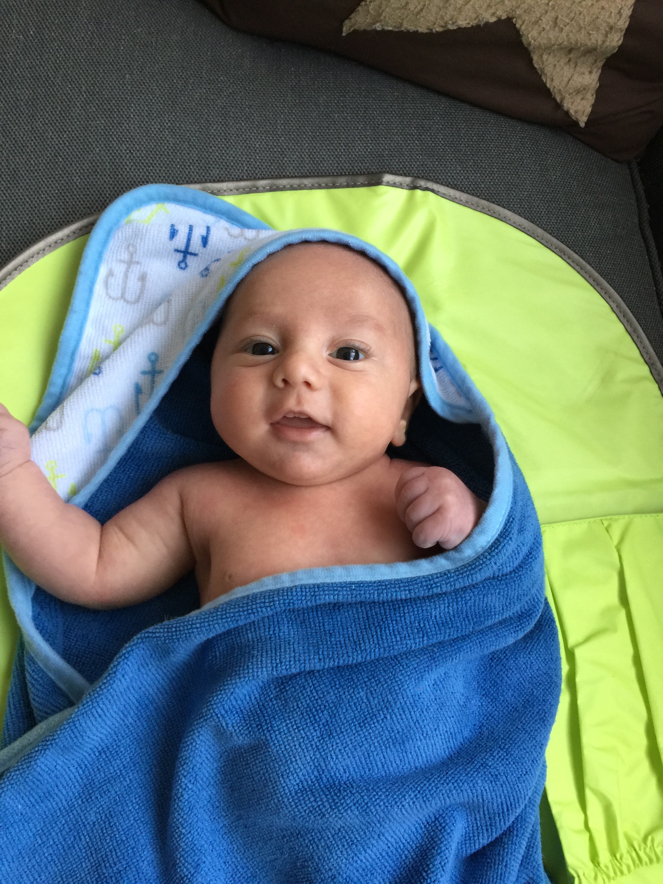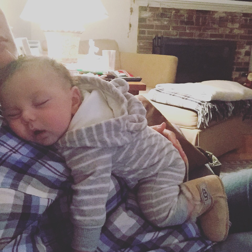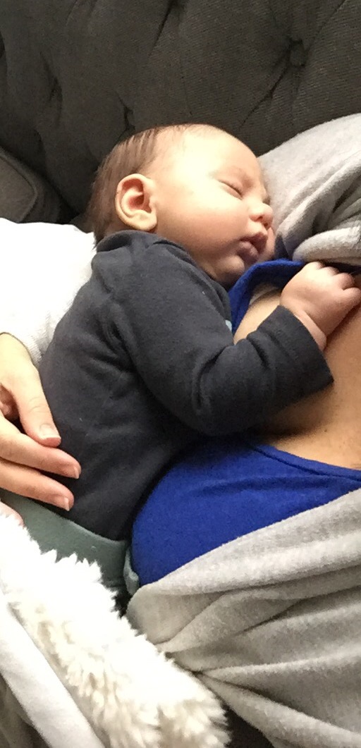 Sleep: he’s been doing much better at night this month. He’ll sleep anywhere from 5-7 hours, wake up to eat and then goes back down for a few hours. I’m feeling much more human these days. During the day he’ll sleep off and on and does much better if he’s in my Boba wrap.