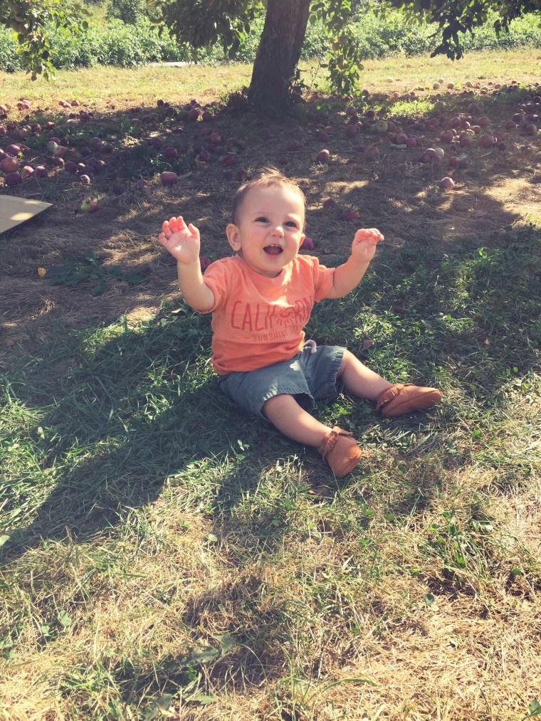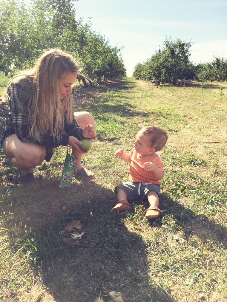 We did our annual apple picking date with the kids this weekend. It was a quick 10 minute Apple picking date because as soon as we got out into the orchard I realized that Beckett had a major diaper blow out. Not the kind of day I had hoped for but I did get a few cute pictures.