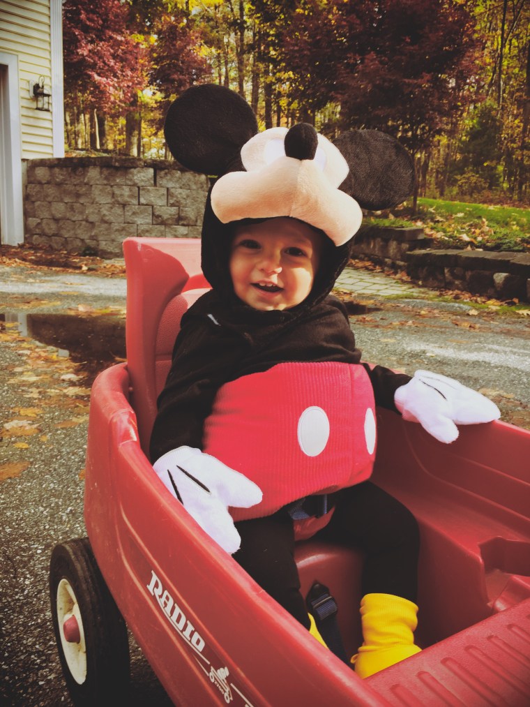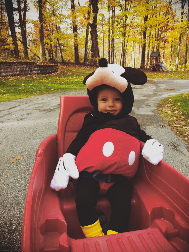 Beckett made the cutest little Mickey Mouse. He happily sat in his wagon and let me pull him around all morning. Trick or treating was a different story. He was not having it at all! He screamed the entire time we were out. He even lost part of his costume while throwing a temper tantrum. I felt bad for the Gilmore family who came with us. I even left in the middle and brought Beckett home to have Chloe put him to bed. Poor baby was tired, cold and probably a little freaked out.
