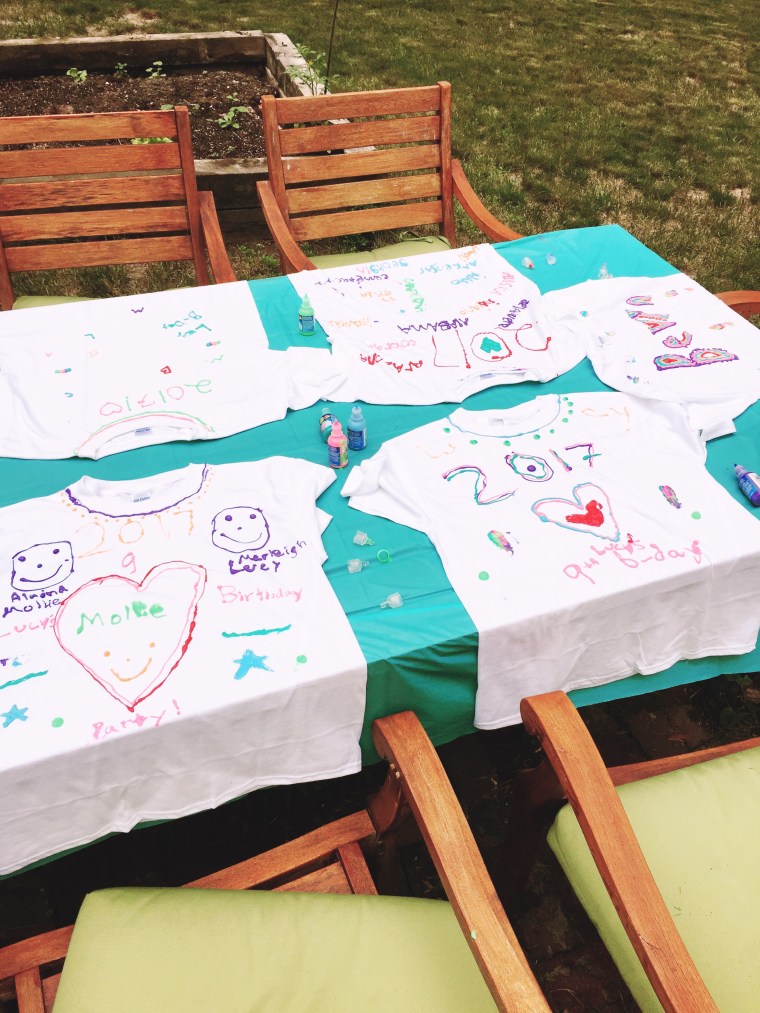 She also celebrated her birthday with her friends. They made tshirts, ice cream sundaes and swam in the pool. Let me tell you that nine year olds are SOOO fun!! She has the cutest group of friends!