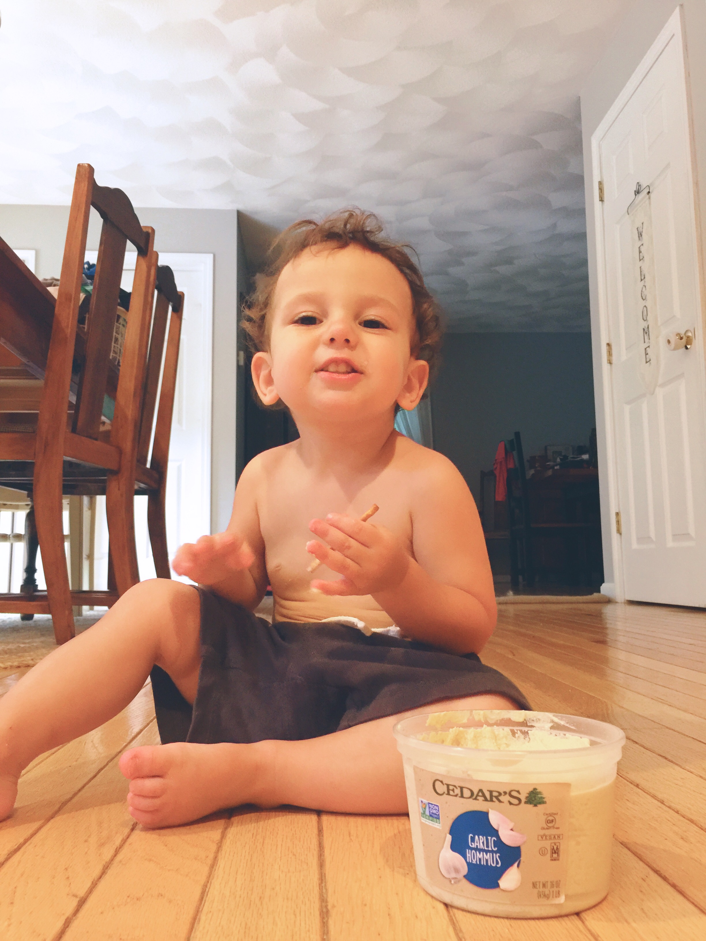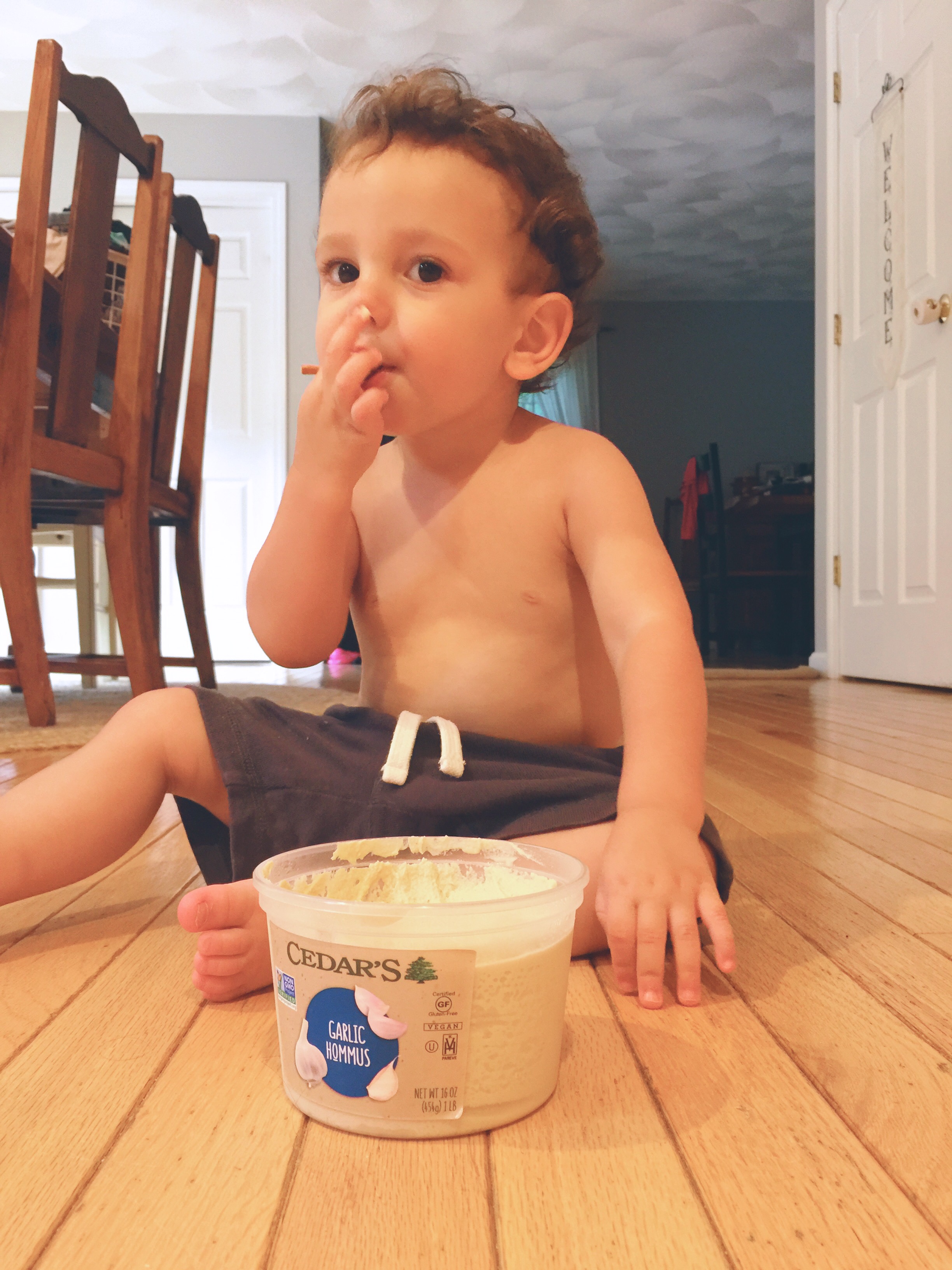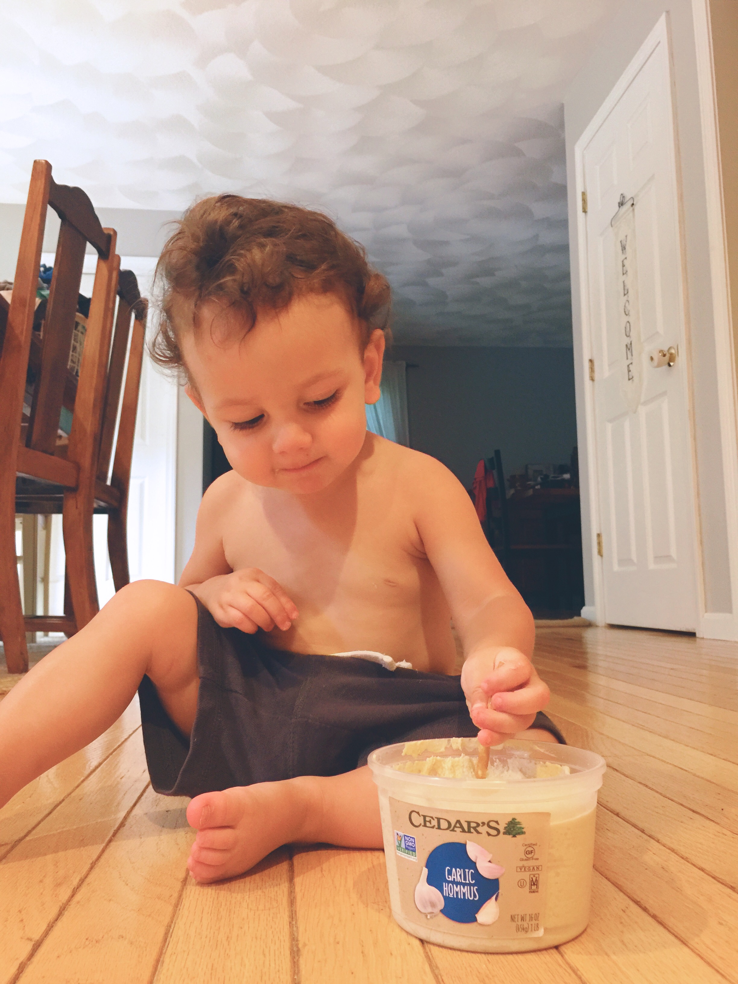 Speaking of Beckett, this little boy has hit the toddler picky eating phase. It is so hard to get food into this boy lately!! It’s frustrating because he used to be such a great eater and now I’m constantly worried that he’s not getting enough calories throughout the day. Yesterday he sat down and ate about 30 mini pretzel sticks with hummus. Yay!!