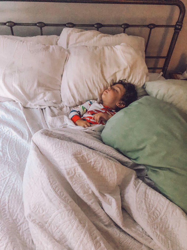 Meanwhile, up in bed was this little boy totally passed out! The same little boy who work me up by 6:15 every morning this summer
