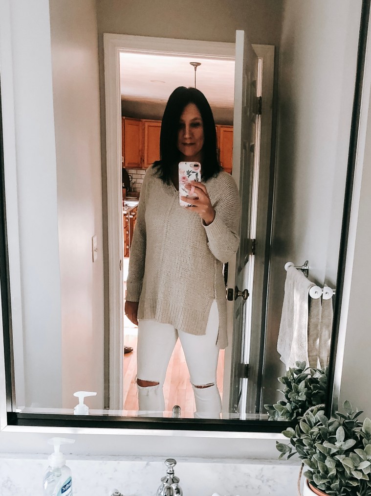 Sometimes you have to take a selfie to document that you’re going out to dinner with REAL clothes on. Ha!