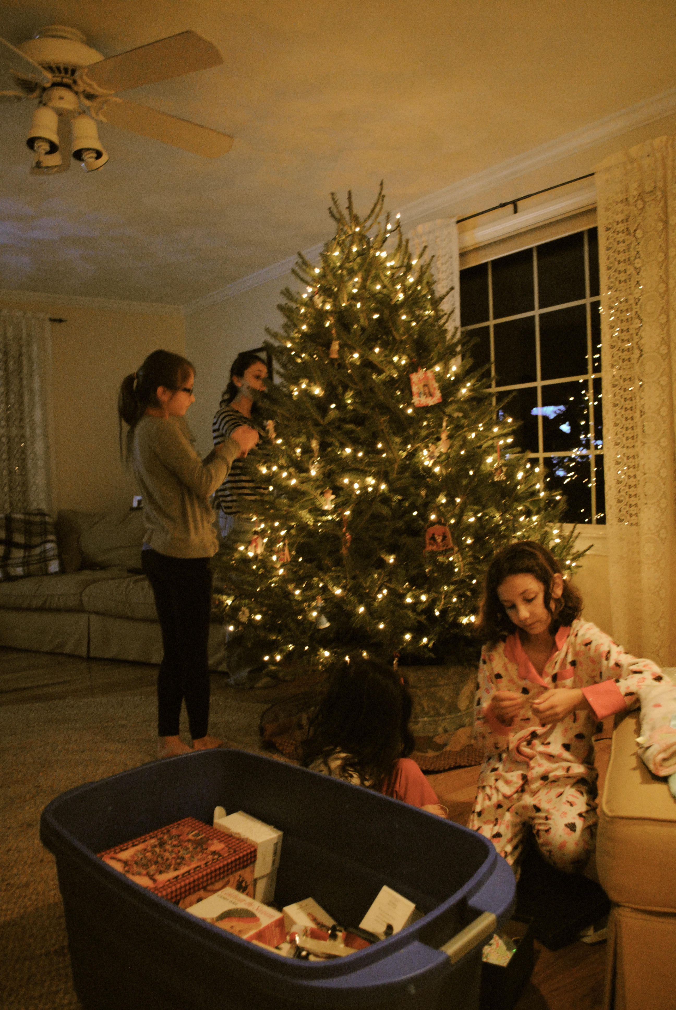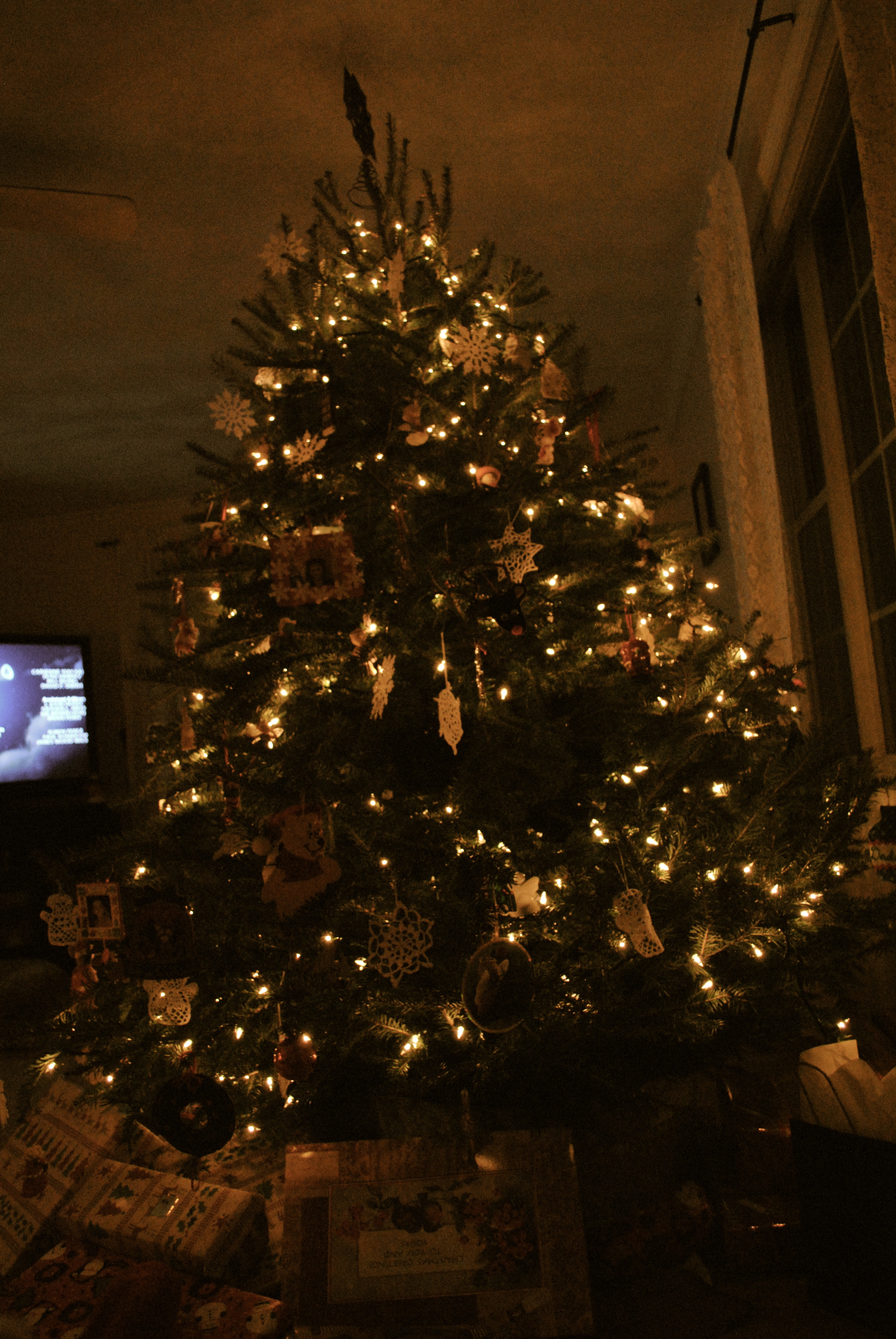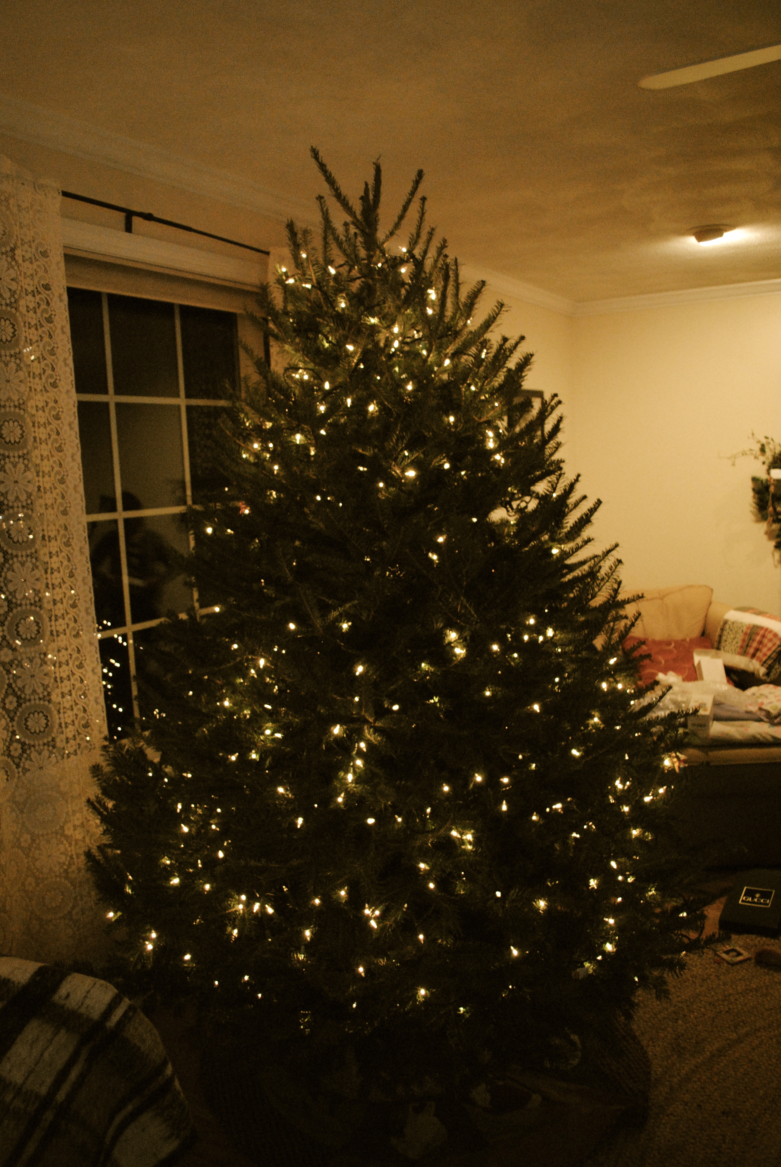 The finished tree! See, it hardly fits in the shot! This is the biggest tree we’ve had in years, it’s as crooked as all our trees from years past but I love it!