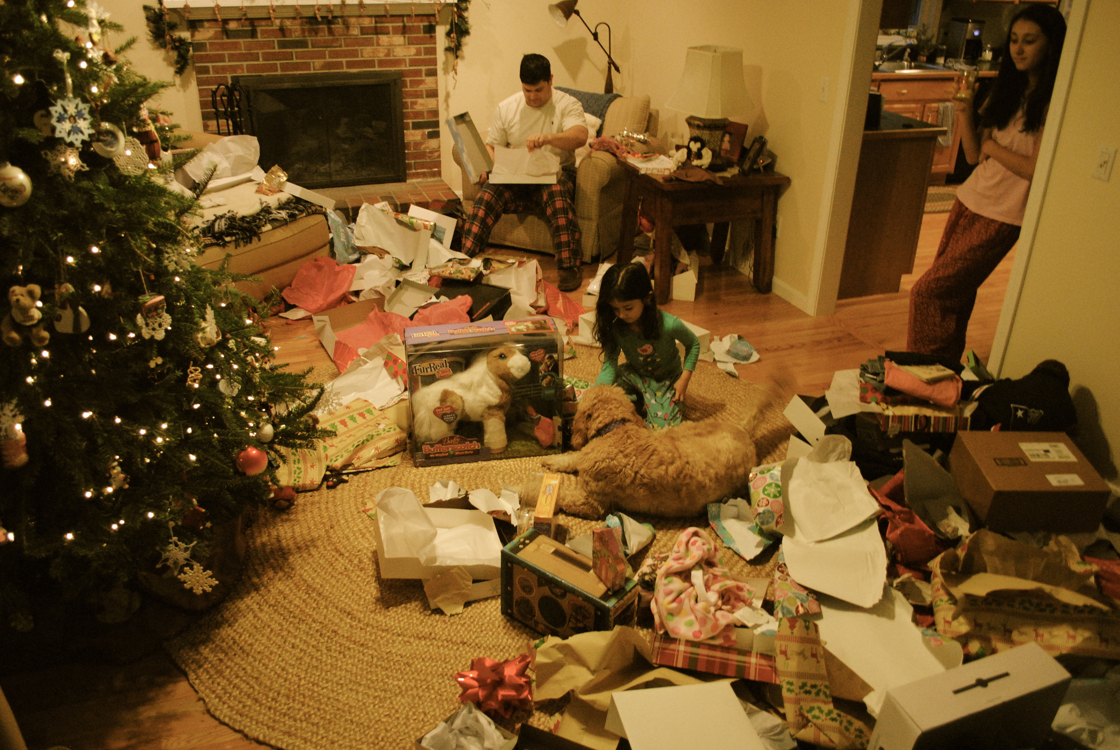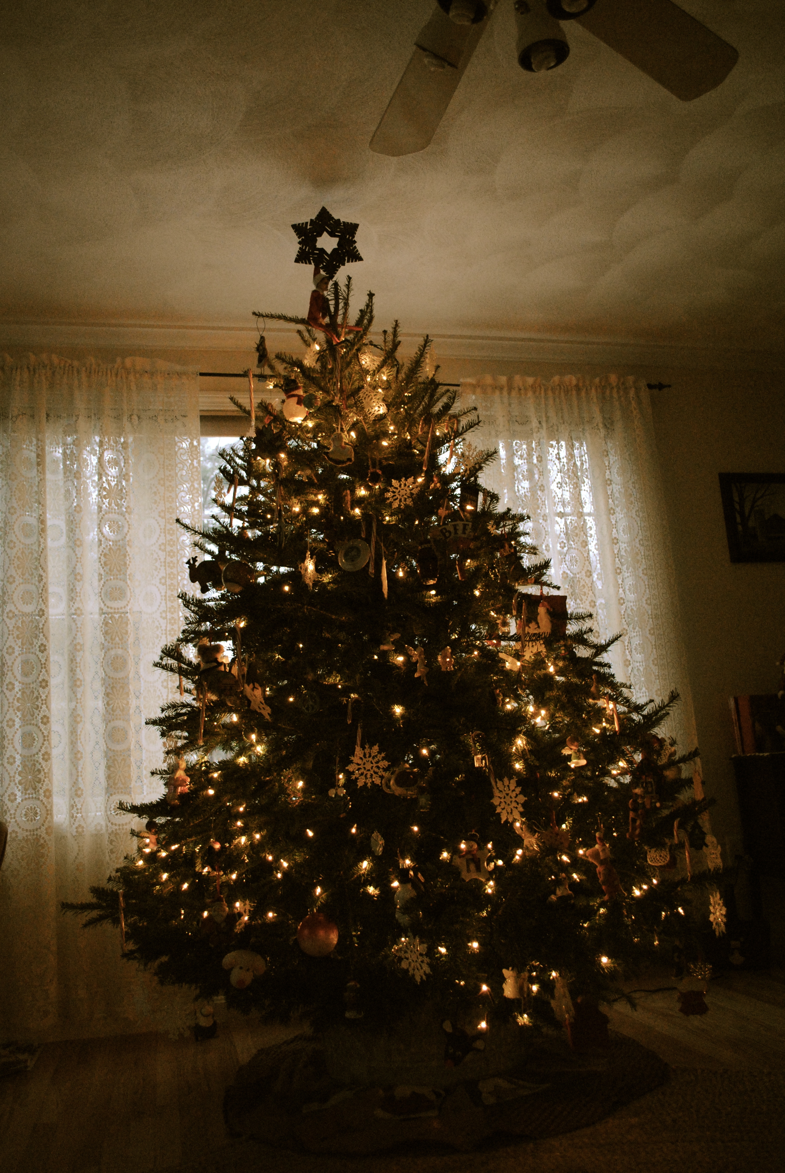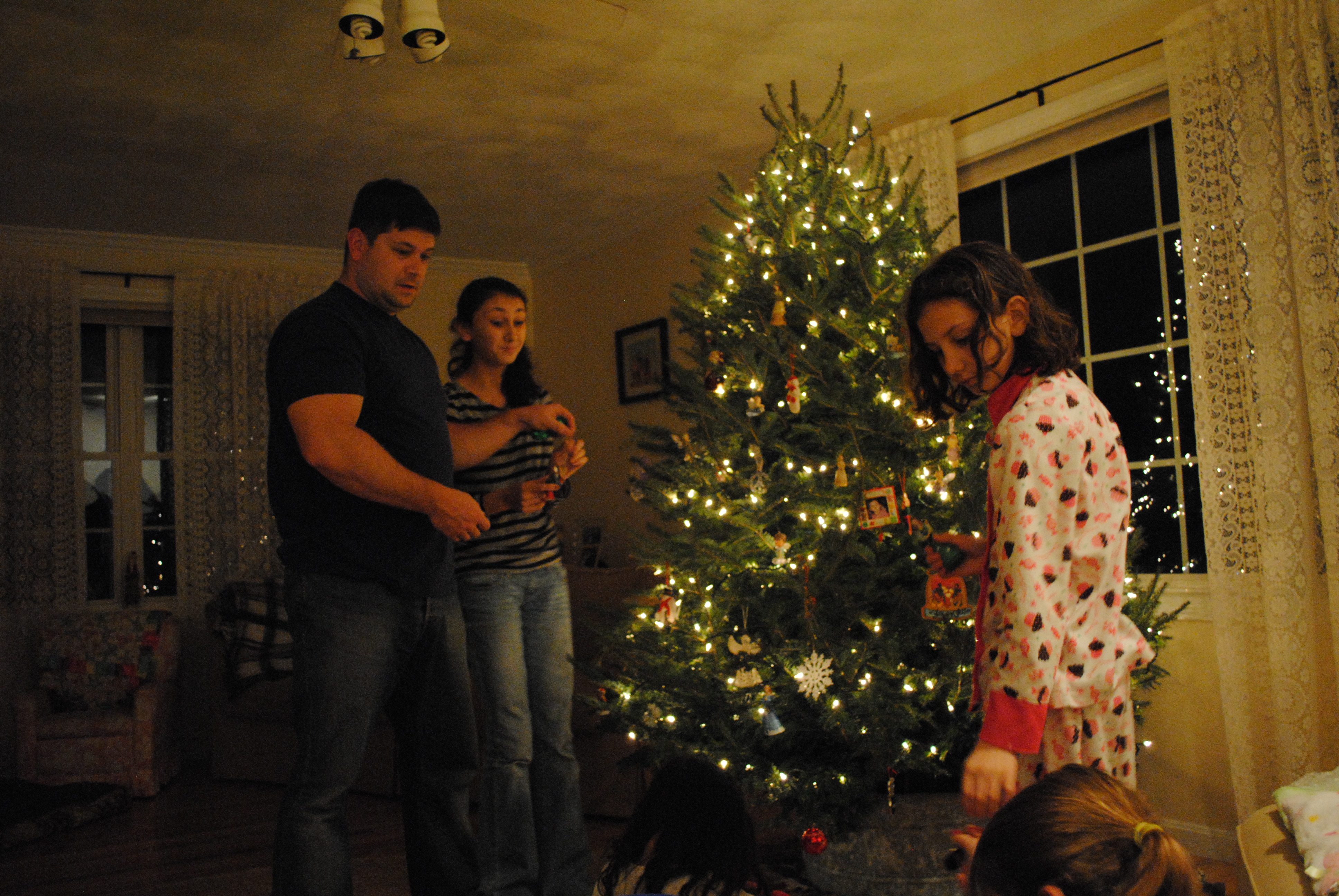 The finished tree! See, it hardly fits in the shot! This is the biggest tree we’ve had in years, it’s as crooked as all our trees from years past but I love it!