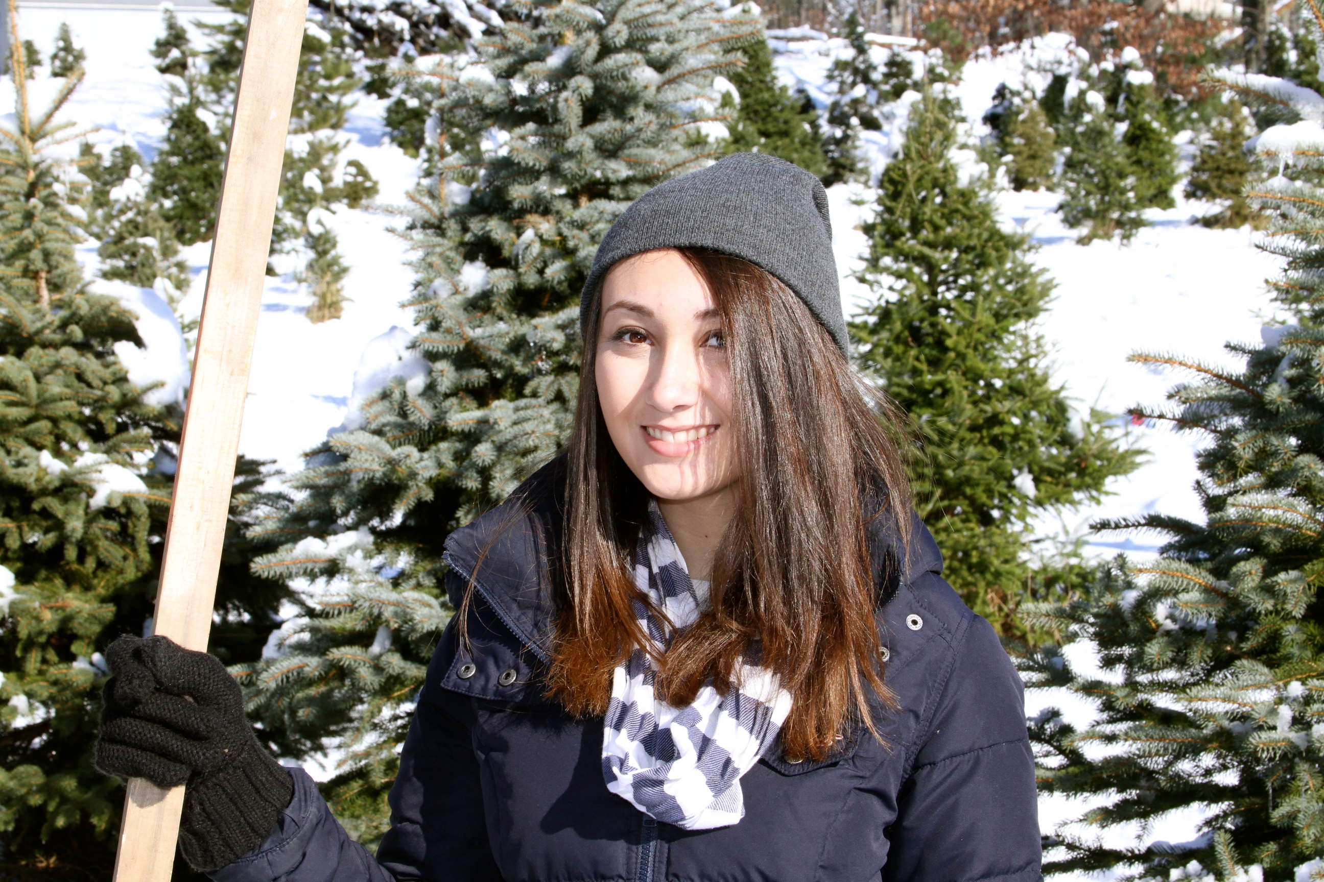 After walking around in the freezing cold we decided on this great big tree! It should fit, right?