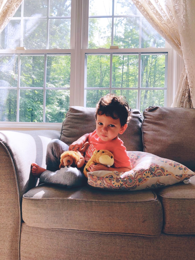 I have a hashtag on Instagram that’s #OhBeckett. It’s something I say to him about 20 times a day: When he crawls up on my lap and gives me a hug and a kiss without me asking I will sigh and say “Oh Beckett, I love you”. When he runs towards a cup of water or Daisy’s dog bowl and pours it out before I can reach him I sigh and say “Oh Beckett, why did you do that?” When he throws a temper tantrum or pulls someone’s hair I get annoyed and say “Oh Beckett, behave yourself!” When he’s playing in another room and I can’t see him I will call out “Oh Beckett, where are you?” Normally he yells out “Dining room”. Ha! He always hides in there.