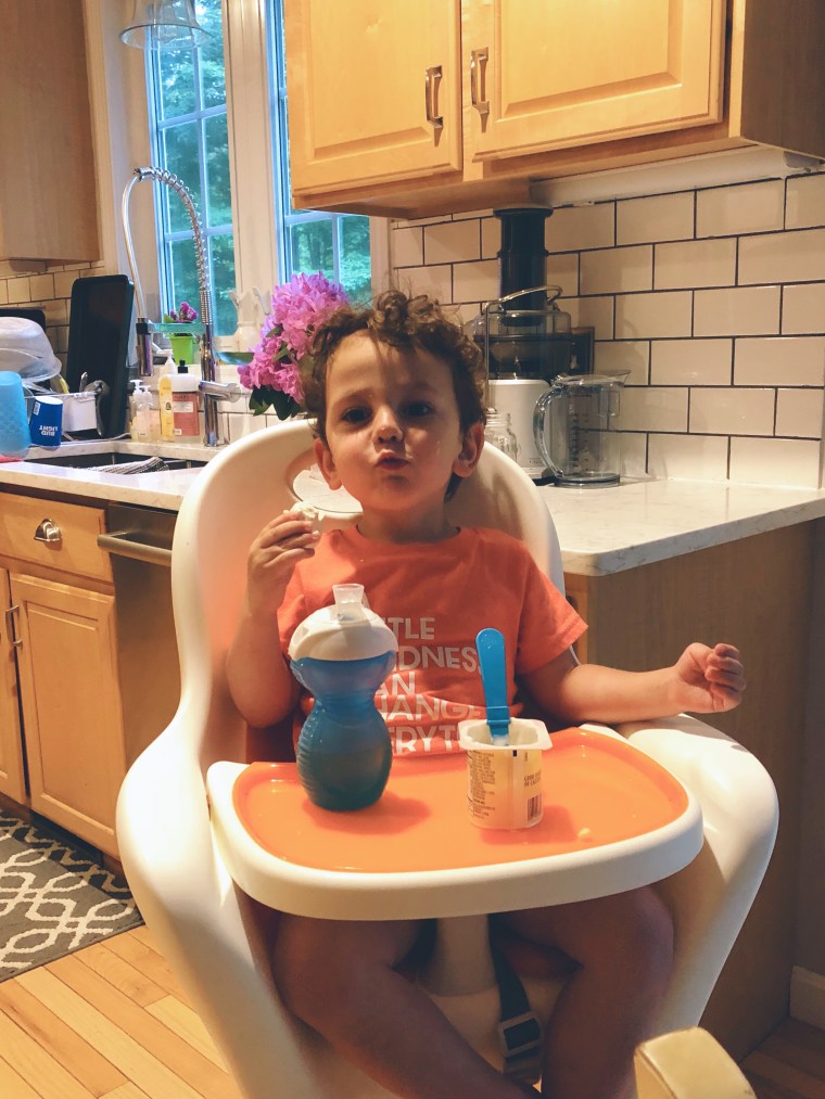 Eating: You wake up every morning and the first thing you ask for is a banana. You sit and watch Mickey Mouse Clubhouse with a banana EVERY morning! For breakfast you usually have a waffle or a piece of toast with a yogurt. Lunch is different every day. You usually nap through lunch so it’s something quick like chicken nuggets, pasta or sometimes eggs with spinach. Dinner is whatever we’re eating for the night. You snack pretty healthy throughout the day. You LOVE LOVE LOVE berries! I always have to have them in the house. Favorite foods: Pizza! Good Earth baby granola bars, yogurt, bananas, berries, pretzels with hummus. Tortilla chips with salsa, cheese, crackers with cream cheese, ice-cream and m&m’s. I had to bribe you at a football game with them recently and you ask for them almost daily now.