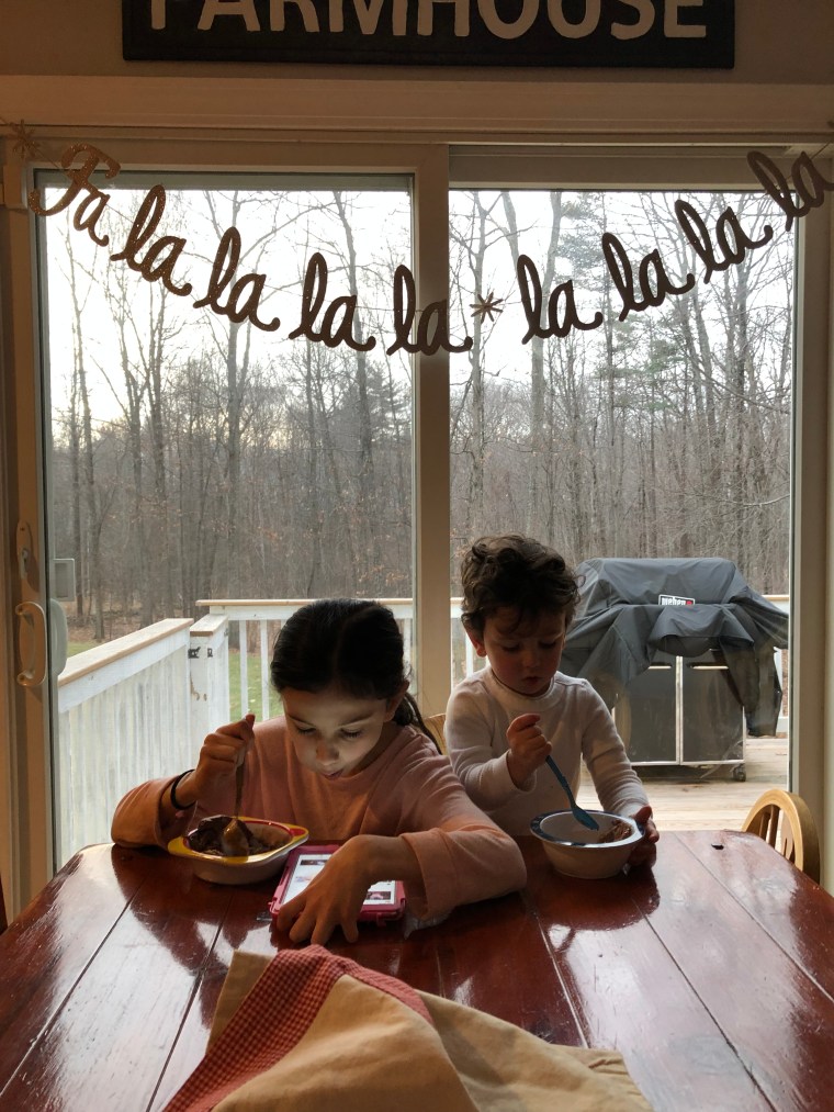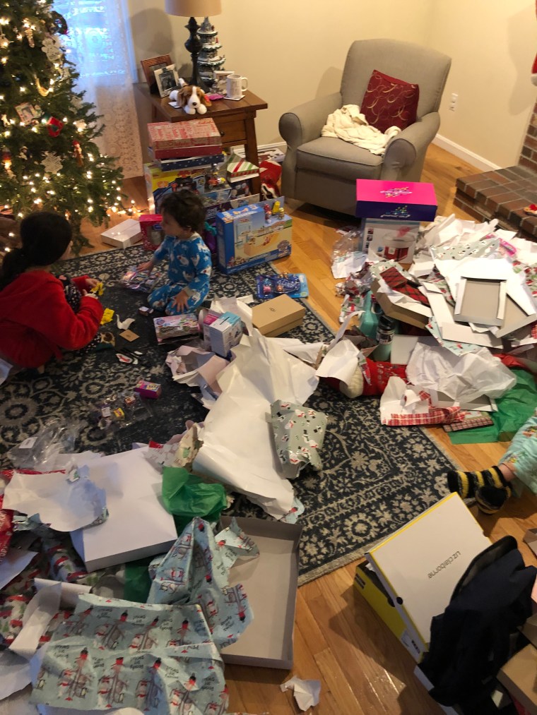 The kids do a Christmas Eve present exchange every year. It’s so fun watching what they pick out for one another. It’s one of my favorite parts of Christmas. We ordered Chinese food, opened new Christmas pjs and then watched a few movies before bed