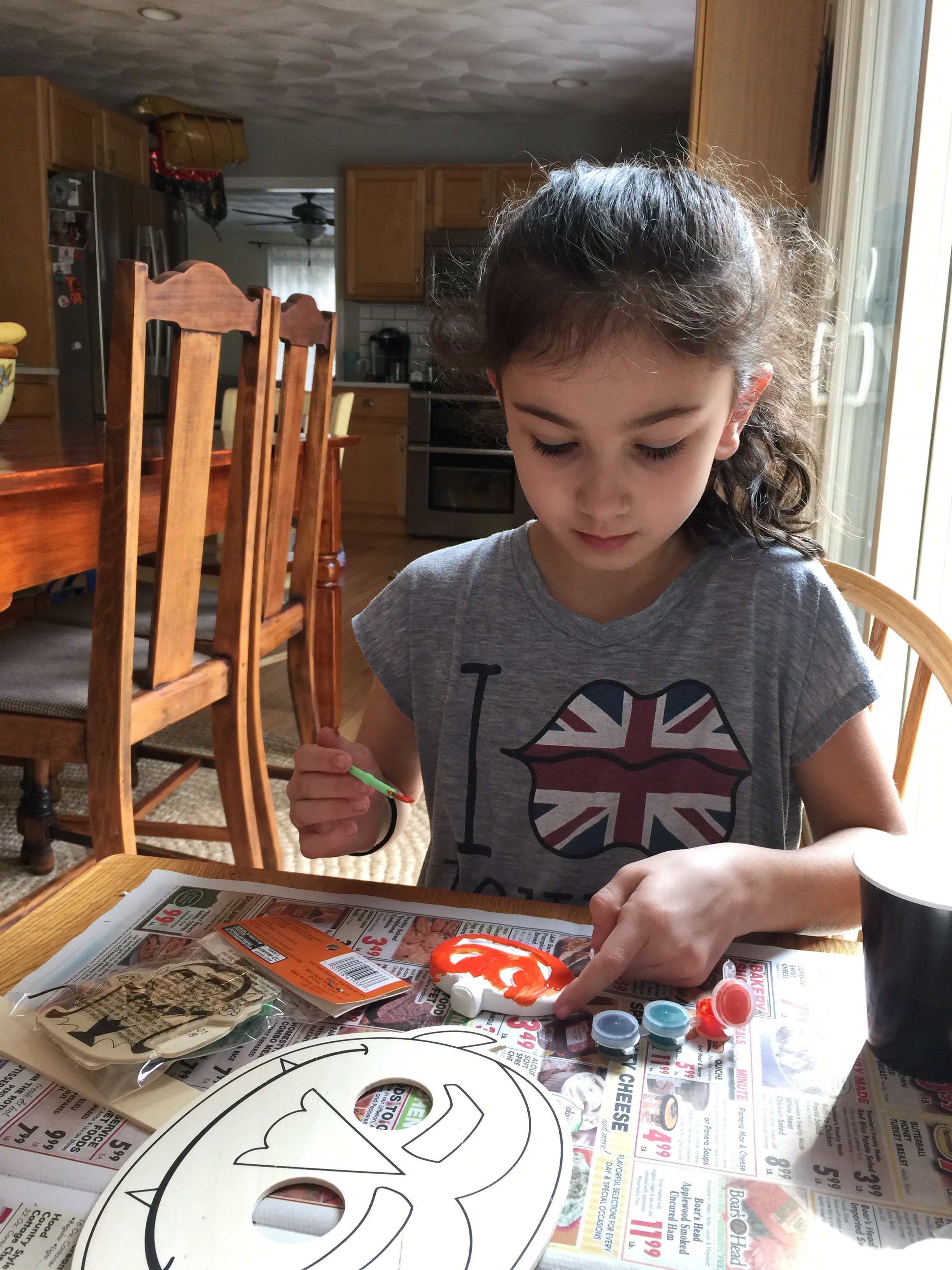 By the time we put the newspaper on the kitchen table and put the Monster Mash on the stereo all five of my kids were gathered around our kitchen table. I have to admit that I LOVE the fact that my kids (and husband) are also suckers for family traditions.
