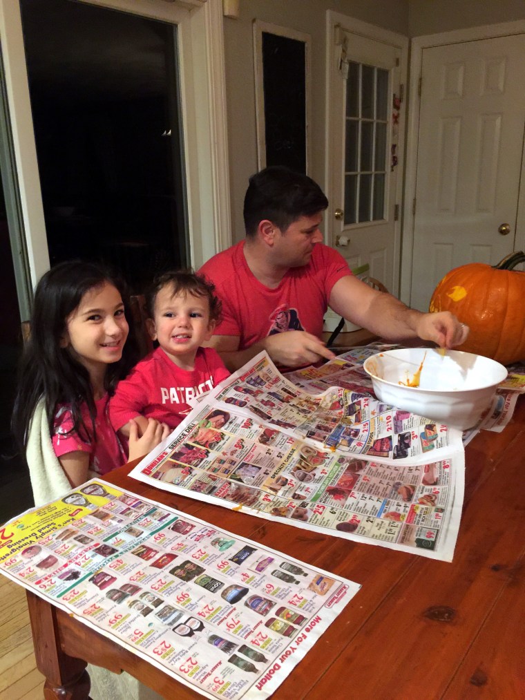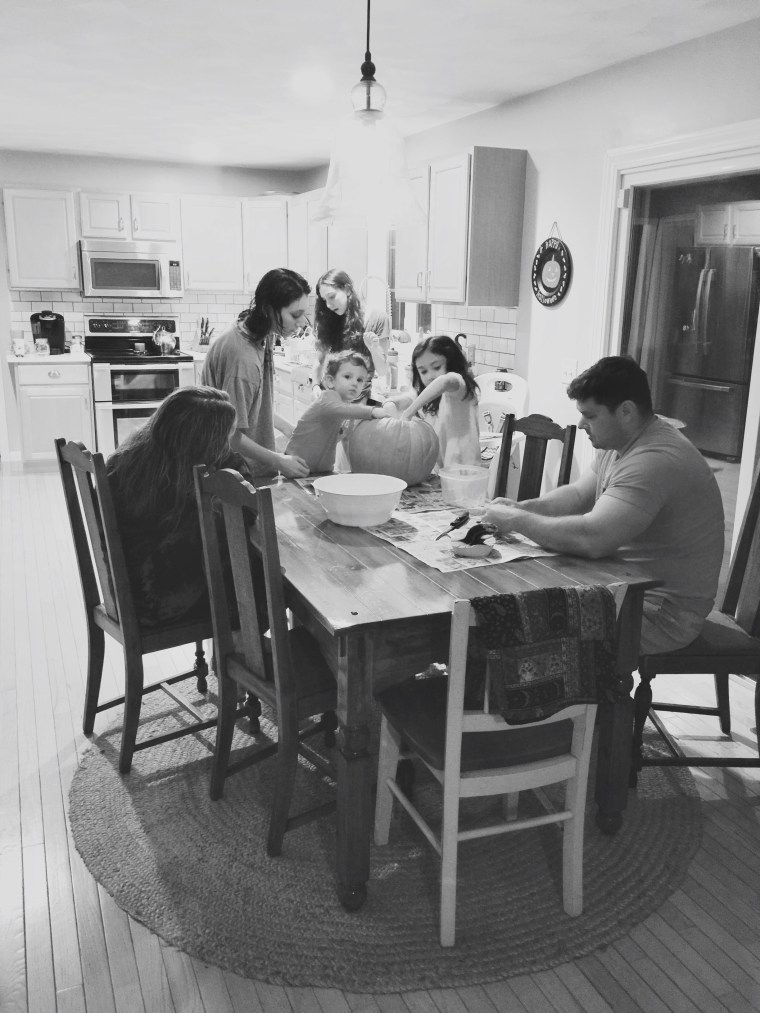 I realized last night that Halloween was only 2 nights away and we hadn’t carved our pumpkins yet. When one of my older daughters (who shall remain nameless) asked what was up for the night I told her that we were planning on turning on Halloween music and carving pumpkins. She rolled her eyes and said, “yeah, not really feeling it.” Ha! Gotta love teenagers. I told her that it was fine and she didn’t have to participate if she didn’t want to. I actually didn’t expect any of the older girls to want to do it this year. But, I’m a sucker for family traditions and I want to make sure that Lucy and Beckett get everything out of their childhood that the older girls got.
