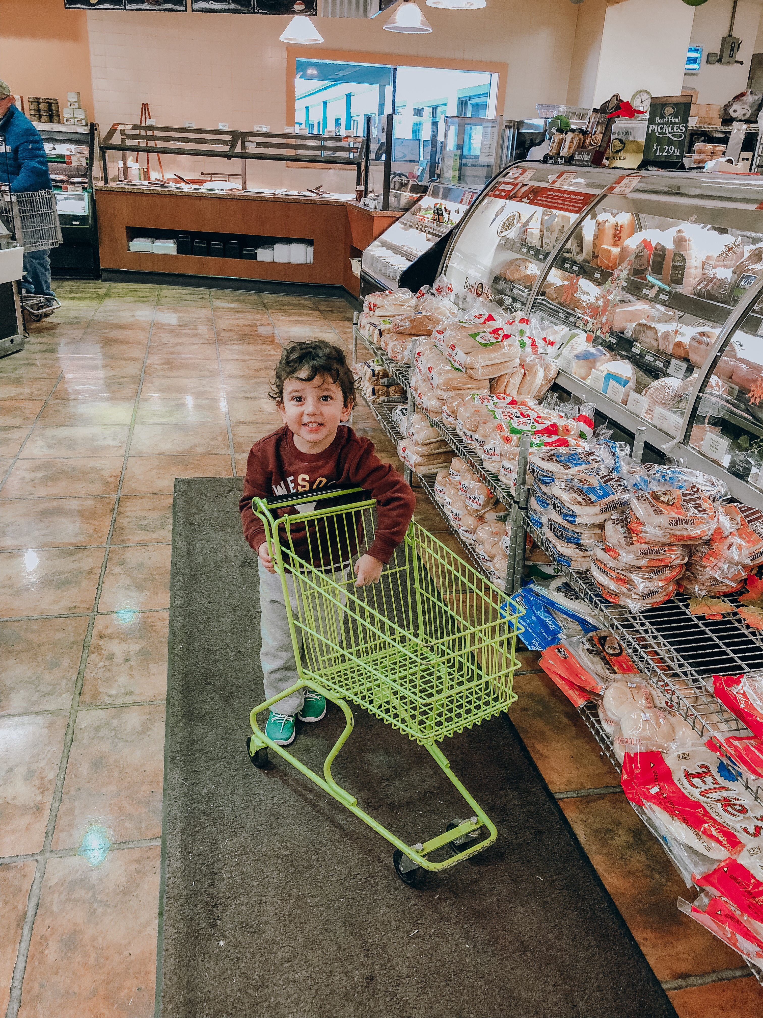 I had this cute little shopping buddy with me. We went out every single day in December. There he is shopping in his pajamas two mornings before Christmas.