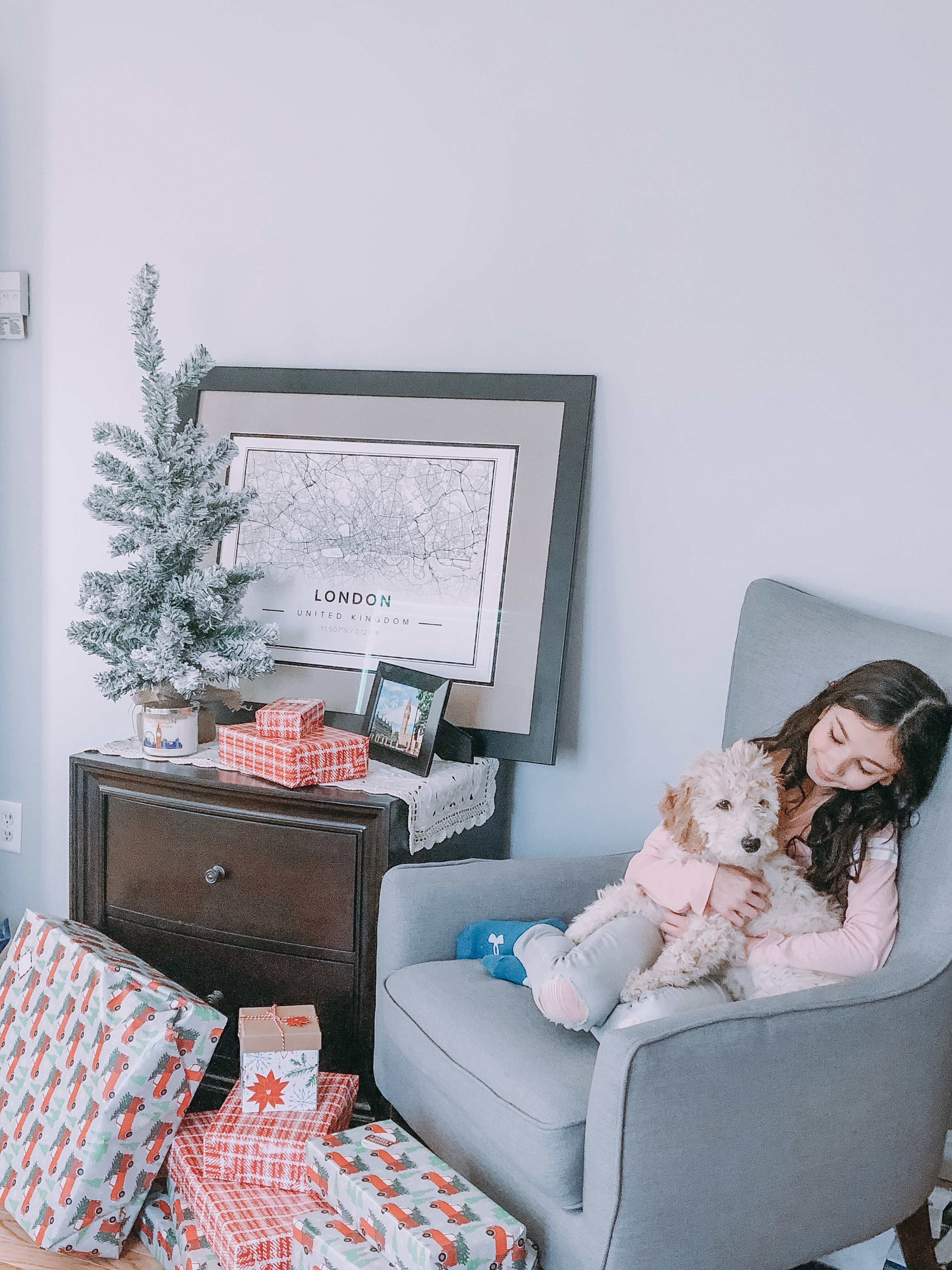 The kids do a Christmas Eve present exchange every year. It’s so fun watching what they pick out for one another. It’s one of my favorite parts of Christmas. We ordered Chinese food, opened new Christmas pjs and then watched a few movies before bed