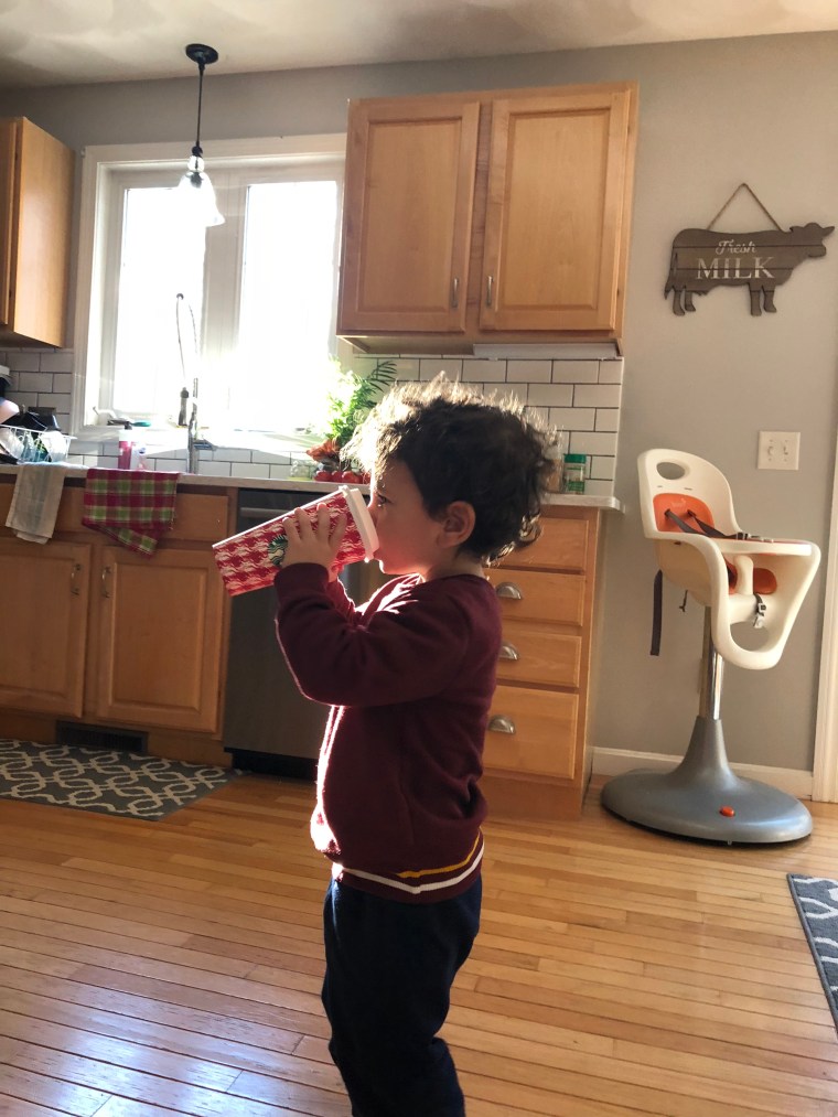 Beckett looked forward to his advent chocolate every morning. Here he is trying to sneak it first thing. Ha!