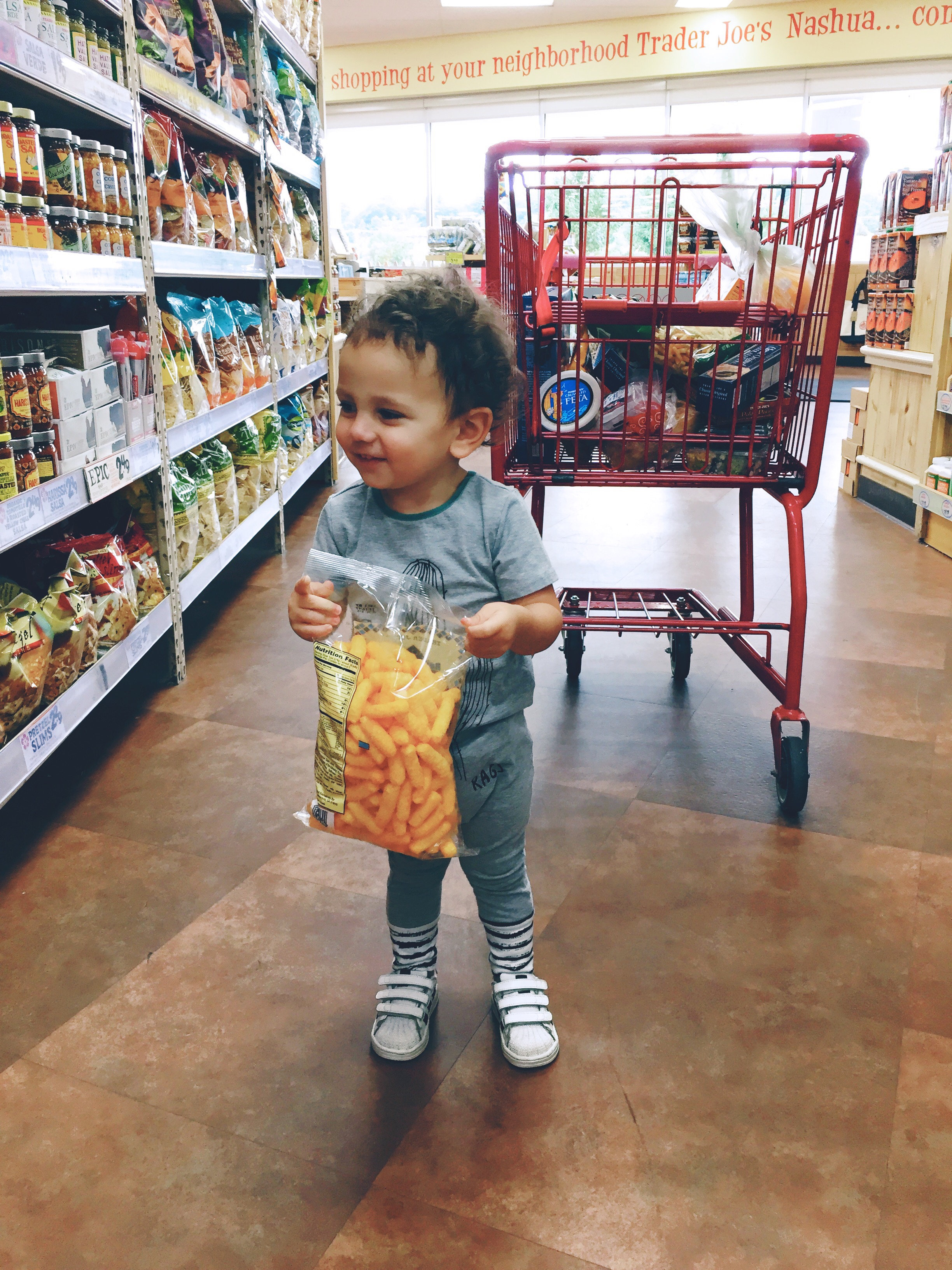 He likes to grab things off the shelves while I shop
